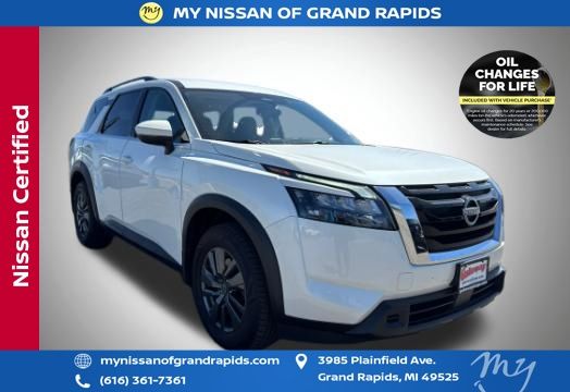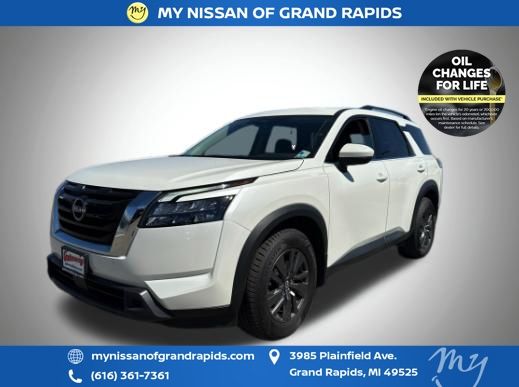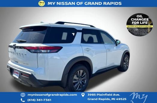 Recent Arrival! Pearl White Tricoat 2023 Nissan Pathfinder SV V6 4WD Odometer is 1461 miles below market average!