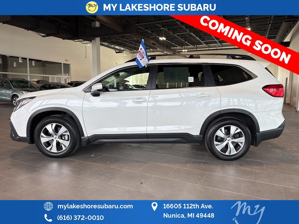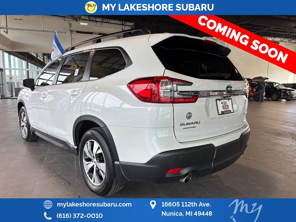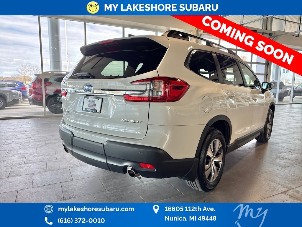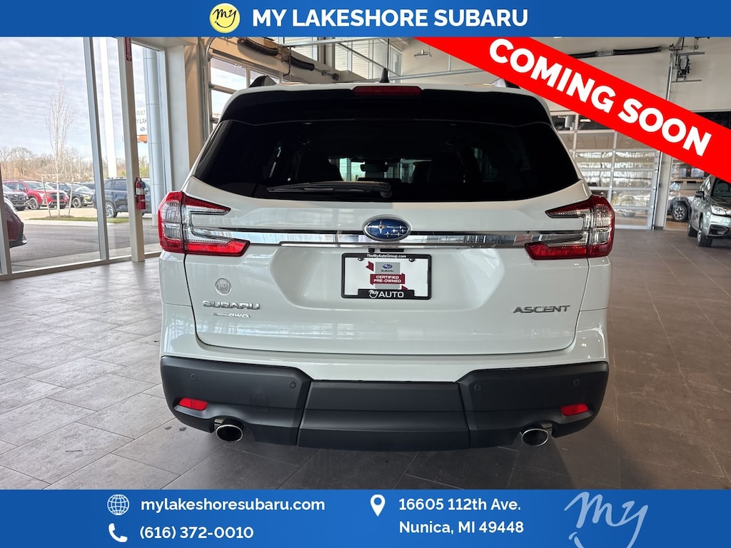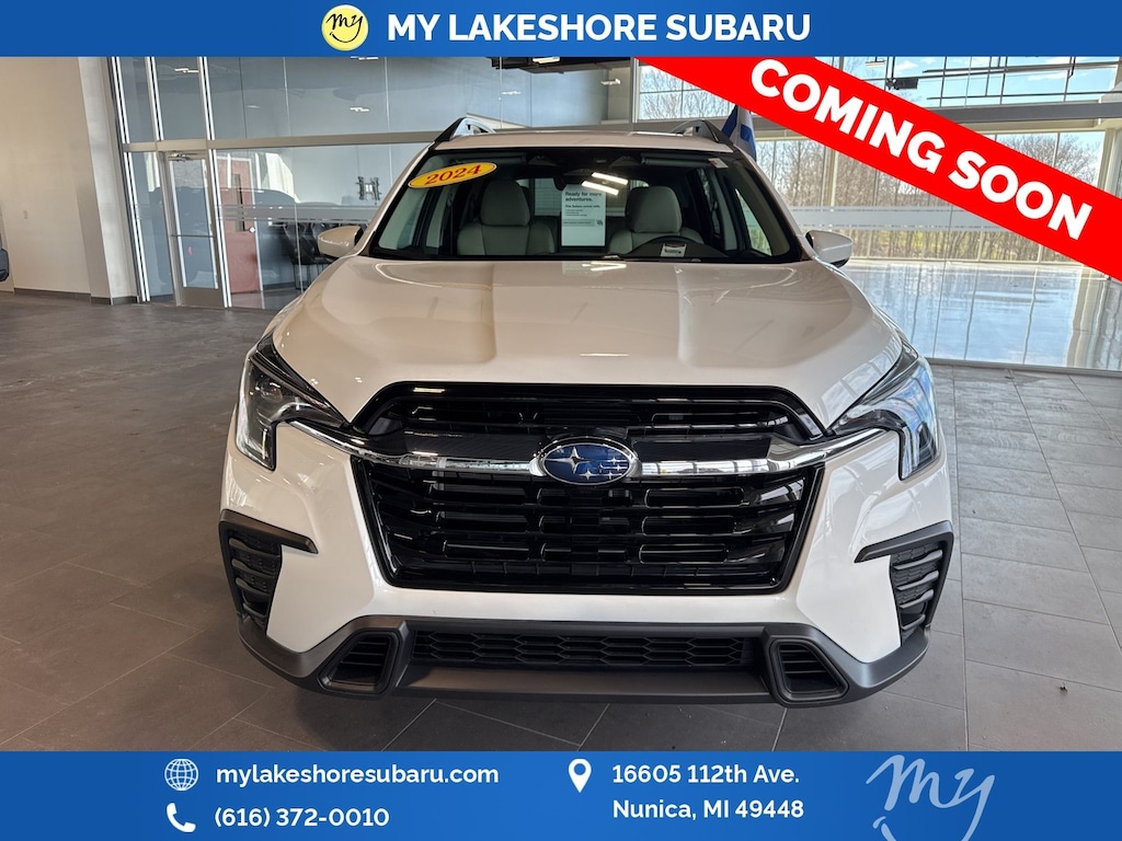 Ascent Premium, Crystal White Pearl, *ALL WHEEL DRIVE*, *APPLE CARPLAY & ANDROID AUTO*, *BACKUP CAMERA*, *EYESIGHT Driver Assist*, *HEATED SEATS*, *LANE DEPARTURE WARNING*, *LOCAL TRADE*, *OIL CHANGES for LIFE*, Auto-Dimming Rear View Compass Mirror w/HomeLink, Convenience Package, Keyless Access w/Push-Button Start, Power Rear Gate w/Automatic Close & Height Memory, Reverse Automatic Braking (RAB) System. Certified. Crystal White Pearl 2024 Subaru Ascent Premium AWD Lineartronic CVT 2.4L 4-Cylinder DOHC 16V