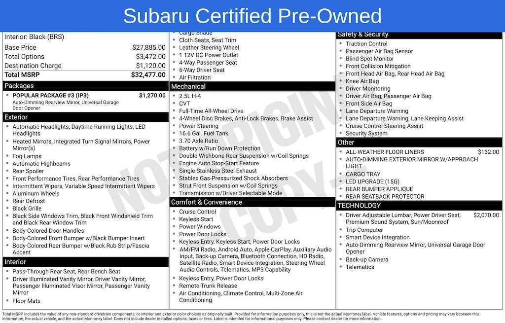 Subaru Certified Pre-Owned Details: