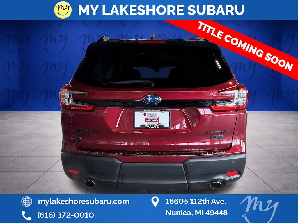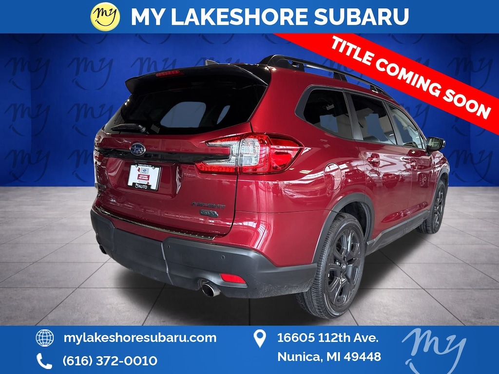 Ascent Onyx Edition Touring, Crimson Red Pearl, *ALL WHEEL DRIVE*, *APPLE CARPLAY & ANDROID AUTO*, *BLIND SPOT ALERT*, *BLIND SPOT MONITORING*, *EYESIGHT Driver Assist*, *HEATED REAR Seats*, *HEATED STEERING WHEEL*, *LANE DEPARTURE WARNING*, *LEATHER HEATED POWER SEATS*, *OIL CHANGES for LIFE*, *PANORAMIC MOONROOF*. Certified. Crimson Red Pearl 2025 Subaru Ascent Onyx Edition Touring AWD Lineartronic CVT 2.4L 4-Cylinder DOHC 16V
