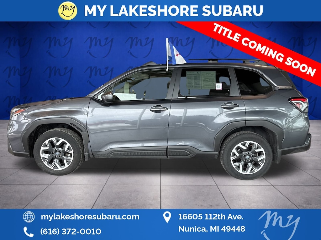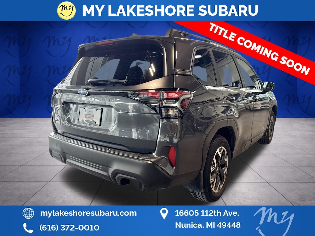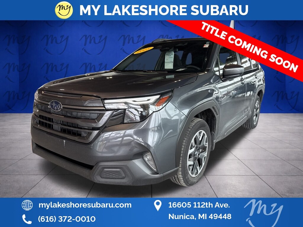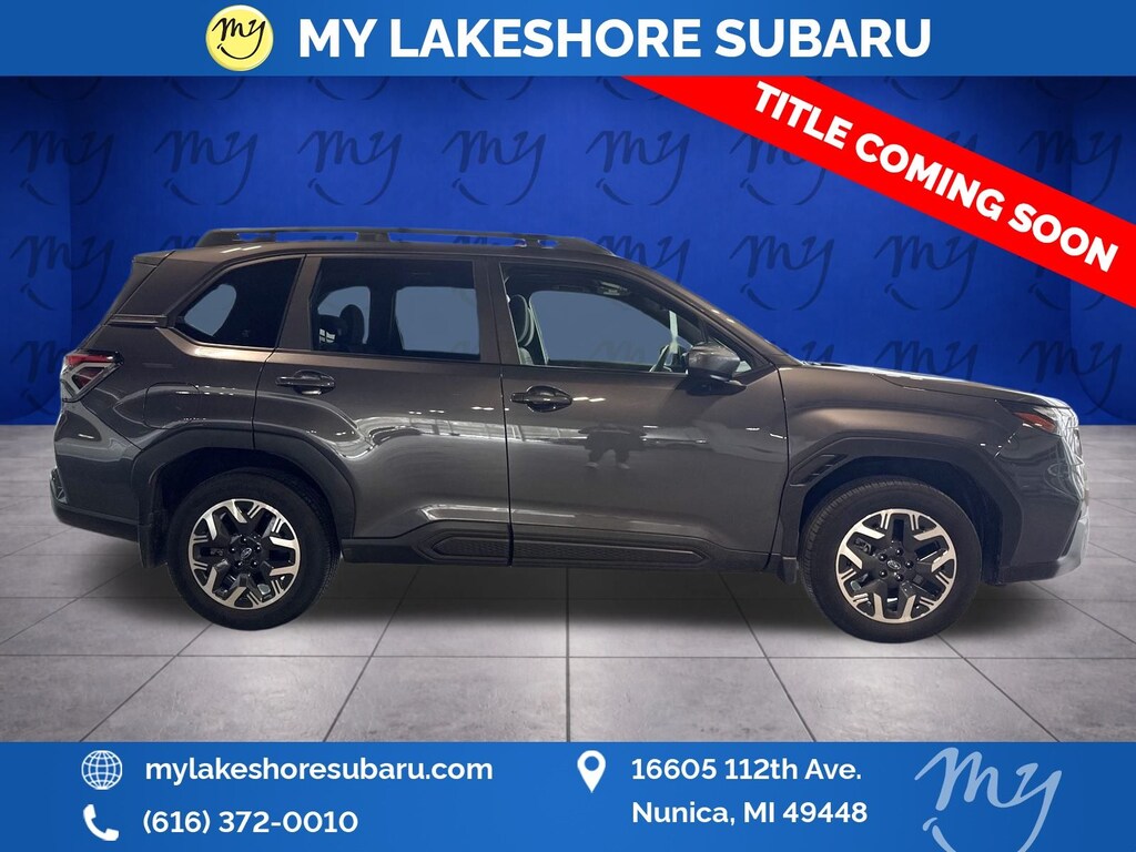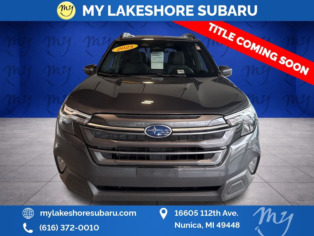 Forester Premium, Magnetite Gray Metallic, *ALL WHEEL DRIVE*, *APPLE CARPLAY & ANDROID AUTO*, *EYESIGHT Driver Assist*, *HEATED SEATS*, *LANE DEPARTURE WARNING*, *OIL CHANGES for LIFE*, *PANORAMIC MOONROOF*. Certified. Magnetite Gray Metallic 2025 Subaru Forester Premium AWD Lineartronic CVT 2.5L 4-Cylinder DOHC 16V