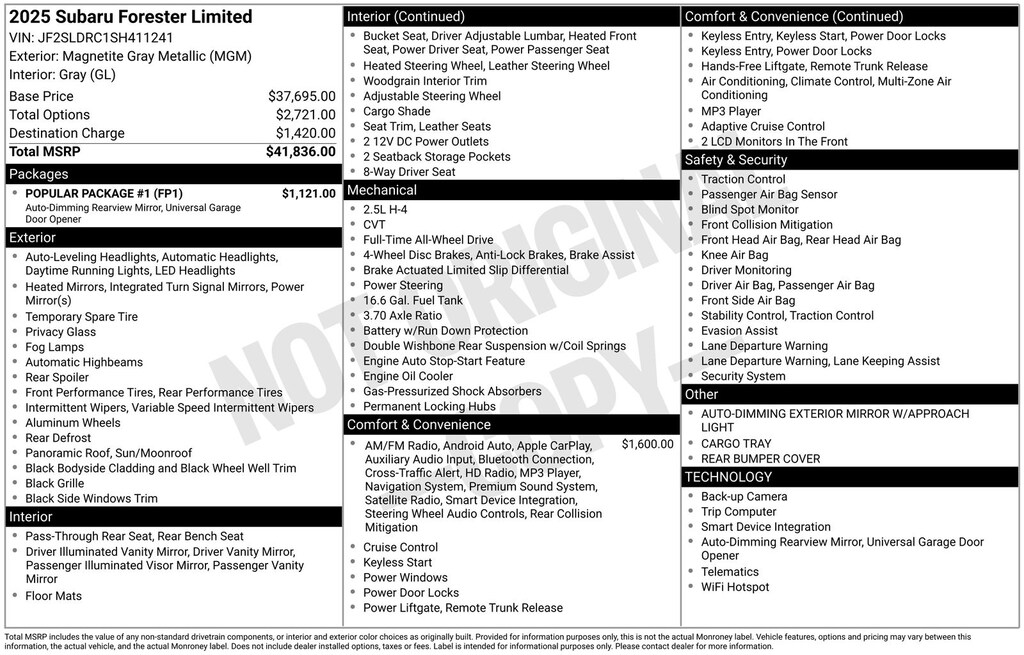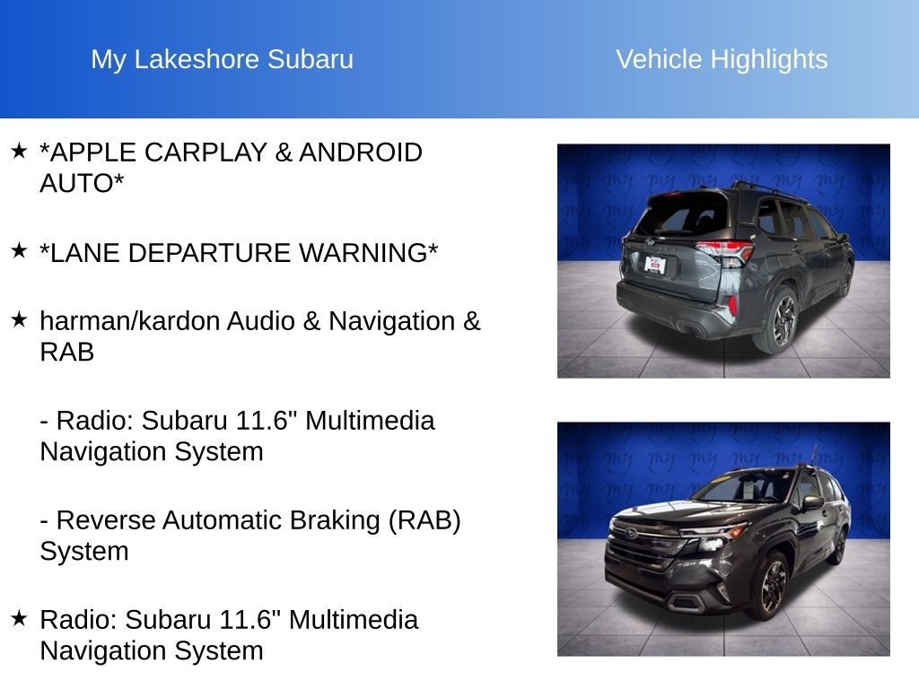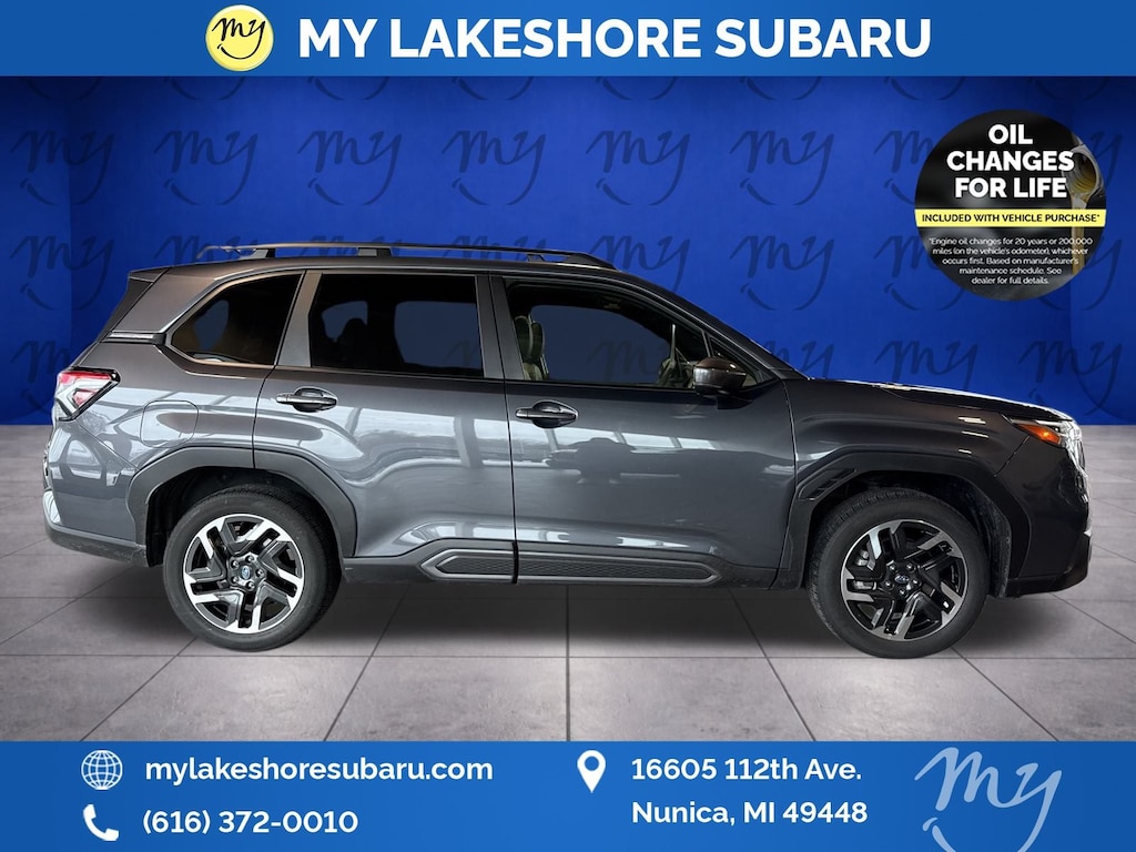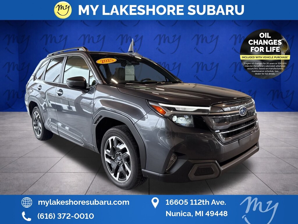 Forester Limited, Magnetite Gray Metallic, *ALL WHEEL DRIVE*, *APPLE CARPLAY & ANDROID AUTO*, *BACKUP CAMERA*, *BLIND SPOT MONITORING*, *EYESIGHT Driver Assist*, *HEATED STEERING WHEEL*, *LANE DEPARTURE WARNING*, *LEATHER HEATED POWER SEATS*, *OIL CHANGES for LIFE*, *PANORAMIC MOONROOF*, harman/kardon Audio & Navigation & RAB, Radio: Subaru 11.6" Multimedia Navigation System, Reverse Automatic Braking (RAB) System. Certified. Magnetite Gray Metallic 2025 Subaru Forester Limited AWD Lineartronic CVT 2.5L 4-Cylinder DOHC 16V