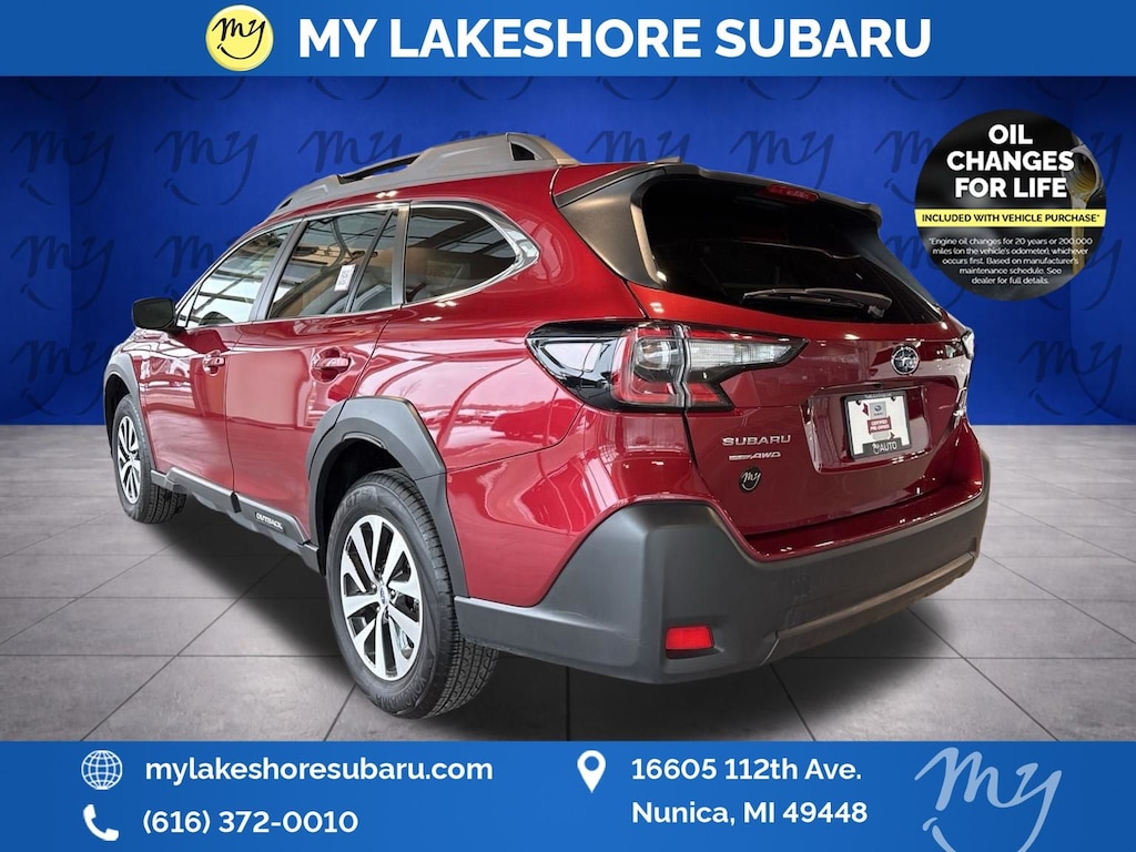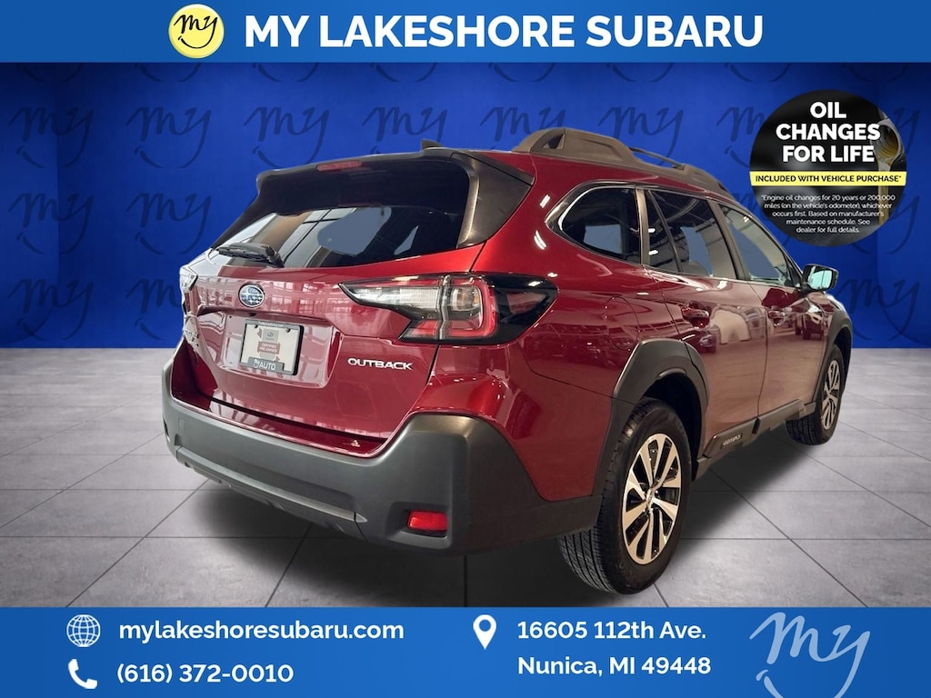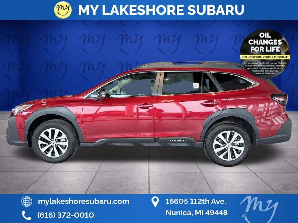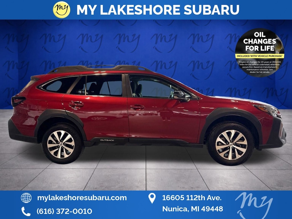 Outback Premium, Crimson Red Pearl, *ALL WHEEL DRIVE*, *APPLE CARPLAY & ANDROID AUTO*, *BACKUP CAMERA*, *BLIND SPOT MONITORING*, *EYESIGHT Driver Assist*, *HEATED SEATS*, *LANE DEPARTURE WARNING*, *MOONROOF*, *OIL CHANGES for LIFE*, Blind Spot Detection (BSD), BSD & RCTA & Keyless Access & Push Button Start, Hands-Free Power Rear Gate, Keyless Access w/Push Button Start, Power Moonroof, Radio: Subaru 11.6" Multimedia System w/Navigation, Rear Cross Traffic Alert (RCTA). Certified. Crimson Red Pearl 2025 Subaru Outback Premium AWD CVT Lineartronic 2.5L 4-Cylinder DOHC 16V