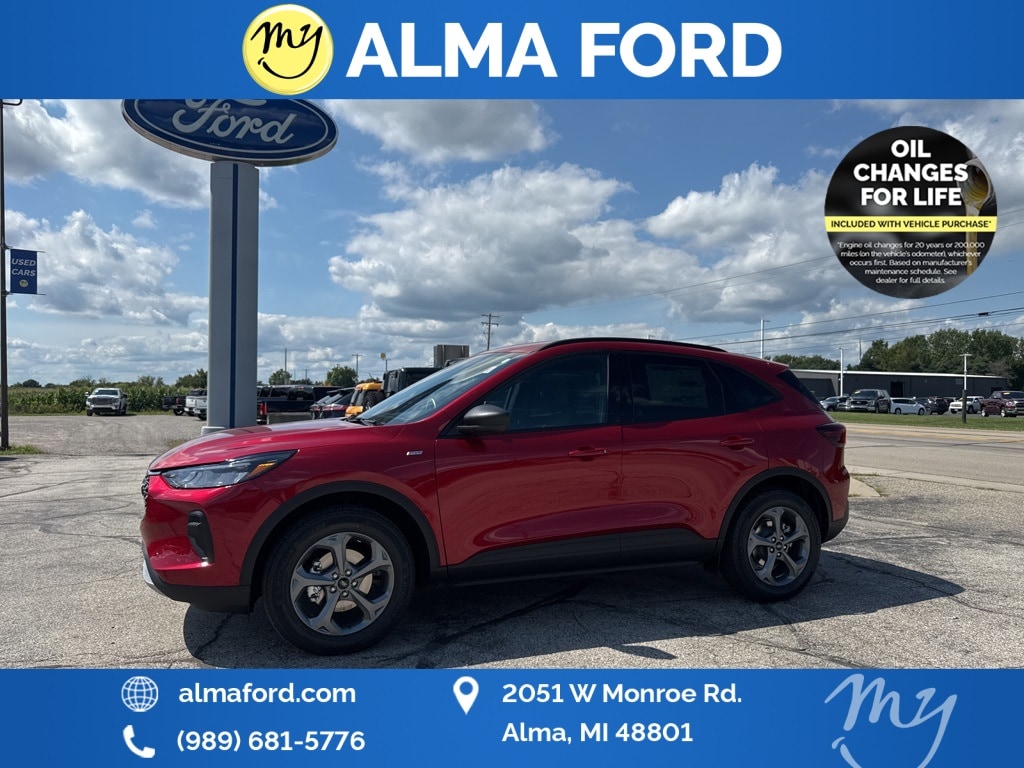 AWD. 2025 Ford Escape ST-Line Red Metallic YOUR BEST PRICE on ANY NEW FORD is at Alma Ford. Get the MOST MONEY for your TRADE and BEST PRICE GUARANTEE on ANY NEW FORD! Alma Ford is your #1 choice in Michigan to get the BEST PRICE on any NEW Ford and HOME of the LIFETIME WARRANTY & OIL Changes for LIFE*. The Alma Ford team is ready to provide you with a world-class experience, ensuring that you find the perfect vehicle that fits all your needs. Every vehicle has been through a 172 point safety inspection completed by a certified technicians and fully detailed. We sell many makes and models, Pre-Owned Ford Vehicles 2025-2024-2023-2022-2021-2020-2019-2018-2017-2016-2015-2014-2013-2012-2011-2010 Ford Bronco, Bronco Sport, Edge, Escapes, Expedition, Explorer, Fusions, Focus, Flex, F-150 Series, F-250, F-350, Super Duty Diesel Trucks, Maverick, Mustang MACH-E, Mustang, Ranger, Transit, and more For sale. Take advantage of our VIP experience by calling 989-699-5260 to schedule a test drive. Read our customer reviews at www.almaford.com/customer-testimonials or view our entire selection of new and preowned vehicles at www.almaford.com, or stop by today, located at 2051 W Monroe, Alma, MI 48801. 2025 Ford Escape ST-Line AWD 8-Speed Automatic 1.5L EcoBoost