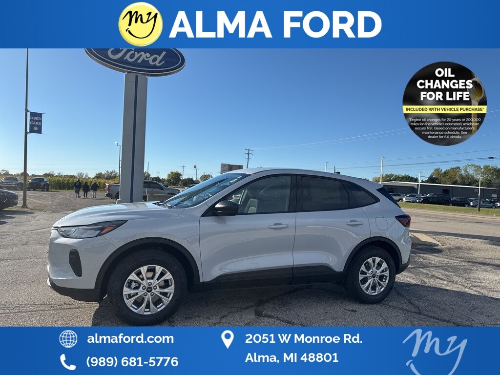 Escape Active, AWD, Space Silver Metallic, Ebony w/Unique Cloth Front Bucket Seats, *ADAPTIVE CRUISE*, *APPLE CARPLAY & ANDROID AUTO*, *BLIND SPOT MONITORING SYSTEM*, *COLD WEATHER Package*, *FULLY SERVICED*, *HANDSFREE BLUETOOTH*, *HEATED SEATS*, *HEATED STEERING WHEEL*, *JUST ARRIVED*, *LANE DEPARTURE WARNING*, *LIFETIME POWERTRAIN WARRANTY*, *NAVIGATION*, *NEW BRAKES*, *NEW TIRES*, *OIL CHANGES for LIFE*, *PREMIUM WHEELS*, *REAR POWER LIFTGATE*, *REMOTE START*, *SUPER BUY*, Adaptive Cruise Control w/Stop-and-Go, Cold Weather Package, Connected Navigation, Equipment Group 200A, Ford Co-Pilot360 Assist+, Heated Front Row Seats, Heated Sideview Mirrors, Heated Steering Wheel, Intersection Assist, Predictive Speed Assist, Rear Parking Sensor, Rear-View Camera, Remote Starter System, SYNC 4 w/Enhanced Voice Recognition, Tech Pack #1, Wheels: 17" Shadow Silver-Painted Aluminum. 2026 Ford Escape Active Space Silver Metallic YOUR BEST PRICE on ANY NEW FORD is at Alma Ford. Get the MOST MONEY for your TRADE and BEST PRICE GUARANTEE on ANY NEW FORD! Alma Ford is your #1 choice in Michigan to get the BEST PRICE on any NEW Ford and HOME of the LIFETIME WARRANTY & OIL Changes for LIFE*. The Alma Ford team is ready to provide you with a world-class experience, ensuring that you find the perfect vehicle that fits all your needs. Every vehicle has been through a 172 point safety inspection completed by a certified technicians and fully detailed. We sell many makes and models, Pre-Owned Ford Vehicles 2025-2024-2023-2022-2021-2020-2019-2018-2017-2016-2015-2014-2013-2012-2011-2010 Ford Bronco, Bronco Sport, Edge, Escapes, Expedition, Explorer, Fusions, Focus, Flex, F-150 Series, F-250, F-350, Super Duty Diesel Trucks, Maverick, Mustang MACH-E, Mustang, Ranger, Transit, and more For sale. Take advantage of our VIP experience by calling 989-699-5260 to schedule a test drive. Read our customer reviews at www.almaford.com/customer-testimonials or view our entire selection of new and preowned vehicles at www.almaford.com, or stop by today, located at 2051 W Monroe, Alma, MI 48801. 2026 Ford Escape Active AWD 8-Speed Automatic 1.5L EcoBoost