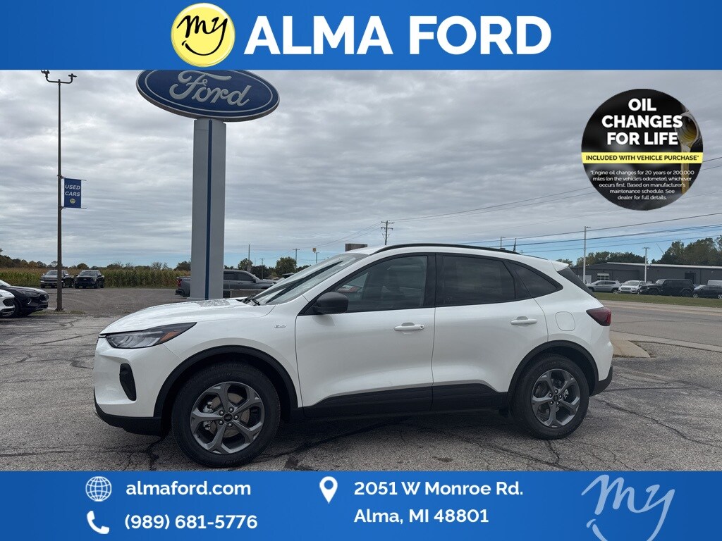 Escape ST-Line, 4D Sport Utility, 1.5L EcoBoost, AWD, Ebony w/Heated Vinyl/Cloth Front Sport Contour Bucket Seats, *ADAPTIVE CRUISE*, *ALL WHEEL DRIVE*, *APPLE CARPLAY & ANDROID AUTO*, *BLIND SPOT MONITORING SYSTEM*, *COLD WEATHER Package*, *FULLY SERVICED*, *HANDSFREE BLUETOOTH*, *HEATED SEATS*, *HEATED STEERING WHEEL*, *JUST ARRIVED*, *LANE DEPARTURE WARNING*, *LIFETIME POWERTRAIN WARRANTY*, *NAVIGATION*, *NEW TIRES*, *OIL CHANGES for LIFE*, *PREMIUM WHEELS*, *REAR POWER LIFTGATE*, *REMOTE START*, *SUPER BUY*, Adaptive Cruise Control w/Stop-and-Go, Cold Weather Package, Connected Navigation, Equipment Group 300A, Ford Co-Pilot360 Assist+, Heated Front Row Seats, Heated Sideview Mirrors, Heated Steering Wheel, Intersection Assist, Predictive Speed Assist, Rear Parking Sensor, Rear-View Camera, Remote Starter System, SYNC 4 w/Enhanced Voice Recognition, Tech Pack #1, Wheels: 18" Rock Metallic Painted Aluminum. 2026 Ford Escape ST-Line Star White Metallic Tri-Coat YOUR BEST PRICE on ANY NEW FORD is at Alma Ford. Get the MOST MONEY for your TRADE and BEST PRICE GUARANTEE on ANY NEW FORD! Alma Ford is your #1 choice in Michigan to get the BEST PRICE on any NEW Ford and HOME of the LIFETIME WARRANTY & OIL Changes for LIFE*. The Alma Ford team is ready to provide you with a world-class experience, ensuring that you find the perfect vehicle that fits all your needs. Every vehicle has been through a 172 point safety inspection completed by a certified technicians and fully detailed. We sell many makes and models, Pre-Owned Ford Vehicles 2025-2024-2023-2022-2021-2020-2019-2018-2017-2016-2015-2014-2013-2012-2011-2010 Ford Bronco, Bronco Sport, Edge, Escapes, Expedition, Explorer, Fusions, Focus, Flex, F-150 Series, F-250, F-350, Super Duty Diesel Trucks, Maverick, Mustang MACH-E, Mustang, Ranger, Transit, and more For sale. Take advantage of our VIP experience by calling 989-699-5260 to schedule a test drive. Read our customer reviews at www.almaford.com/customer-testimonials or view our entire selection of new and preowned vehicles at www.almaford.com, or stop by today, located at 2051 W Monroe, Alma, MI 48801. 2026 Ford Escape ST-Line AWD 8-Speed Automatic 1.5L EcoBoost
