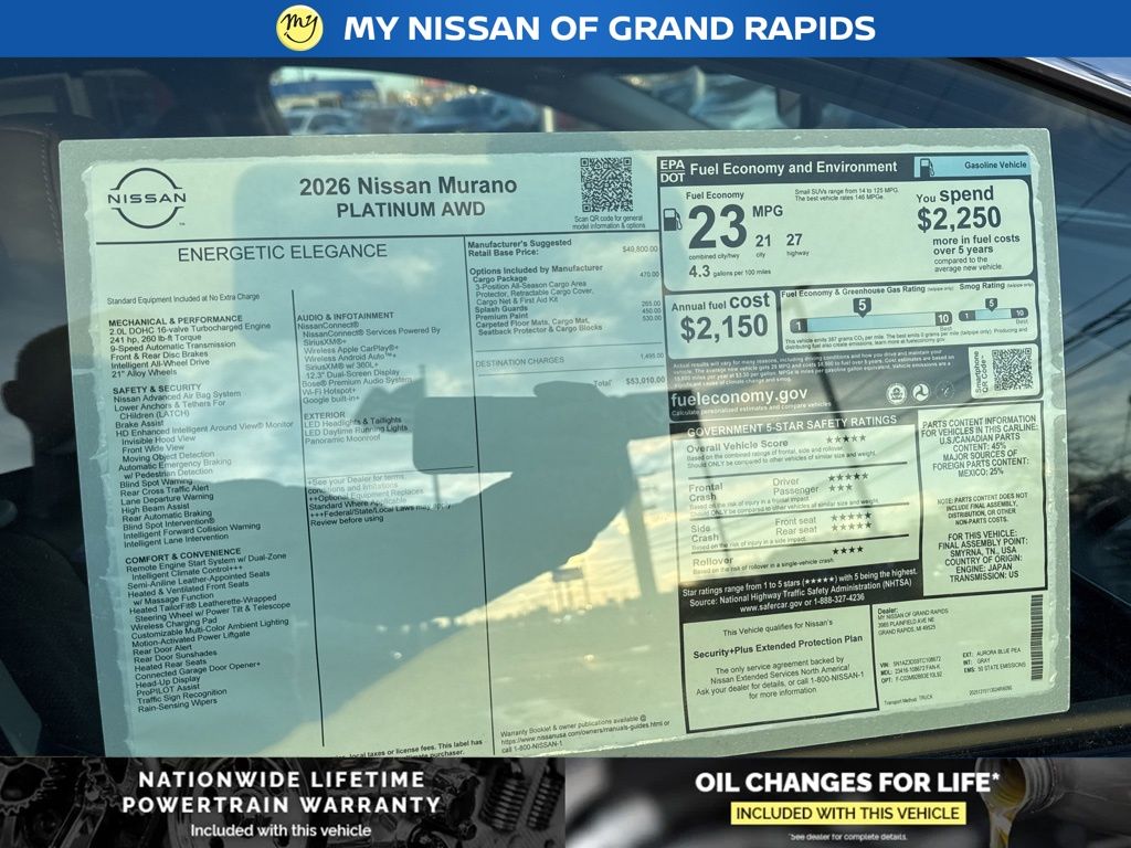 *LIFETIME POWERTRAIN* *AND LIFETIME OIL CHANGES* My Nissan of Grand Rapids is your #1 choice in Michigan to get the BEST PRICE on NEW Nissan vehicles and BEST value for your trade. The My Nissan of Grand Rapids team is ready to provide you with a world-class experience, ensuring that you find the perfect vehicle that fits all your needs. My Nissan of Grand Rapids offers FREE LIFETIME OIL CHANGES and LIFETIME POWERTRAIN WARRANTY with the purchase of your New Nissan. My Nissan of Grand Rapids offers Lifetime Nationwide coverage on your engine, transmission, drive train and coverage on all internally lubricating parts for as long as you own the vehicle in any state. Our lifetime nationwide warranty is set apart from most dealerships, because you can travel to any repair shop in the nation for repairs. Electric/Hybrid Models are not included in the lifetime powertrain warranty. Take advantage of our VIP experience by calling 616-361-7361 to schedule a test drive. Read our customer reviews and view our entire selection of New Nissan or preowned vehicles at www.myautograndrapids.com, www.mynissanofgrandrapids.com or stop by today, located at 3985 Plainfield Ave NE, Grand Rapids, MI 49525.