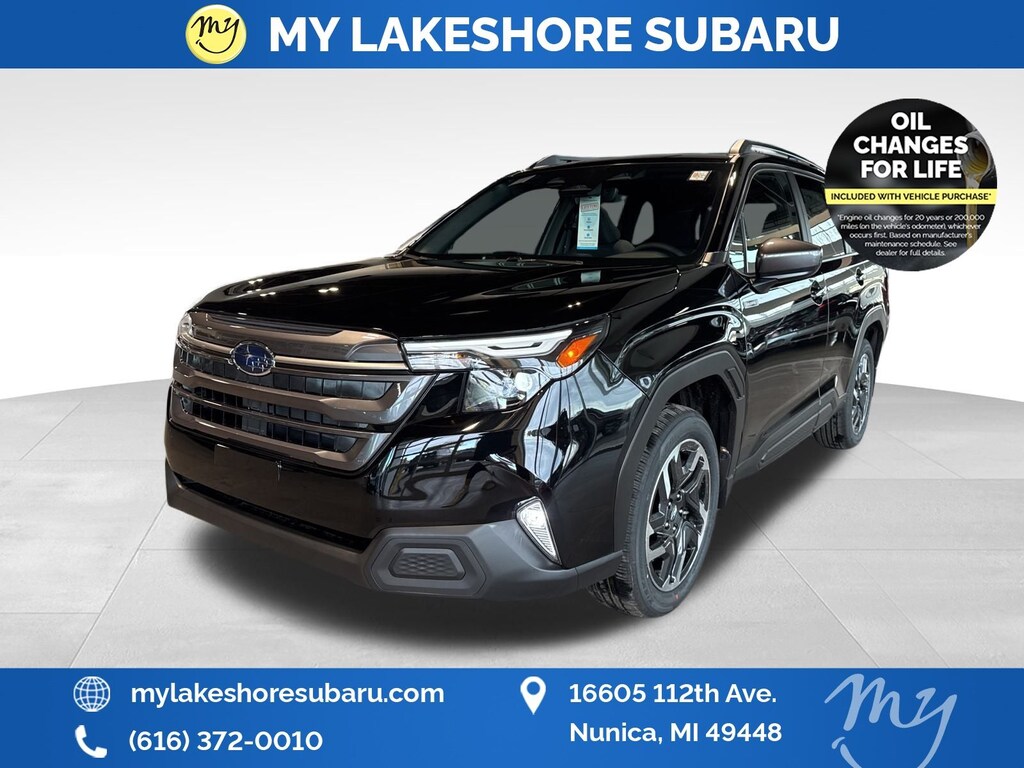 2.5L 4-Cylinder DOHC 16V. Crystal Black Silica 2025 Subaru Forester Hybrid Premium AWD Lineartronic CVT 2.5L 4-Cylinder DOHC 16V