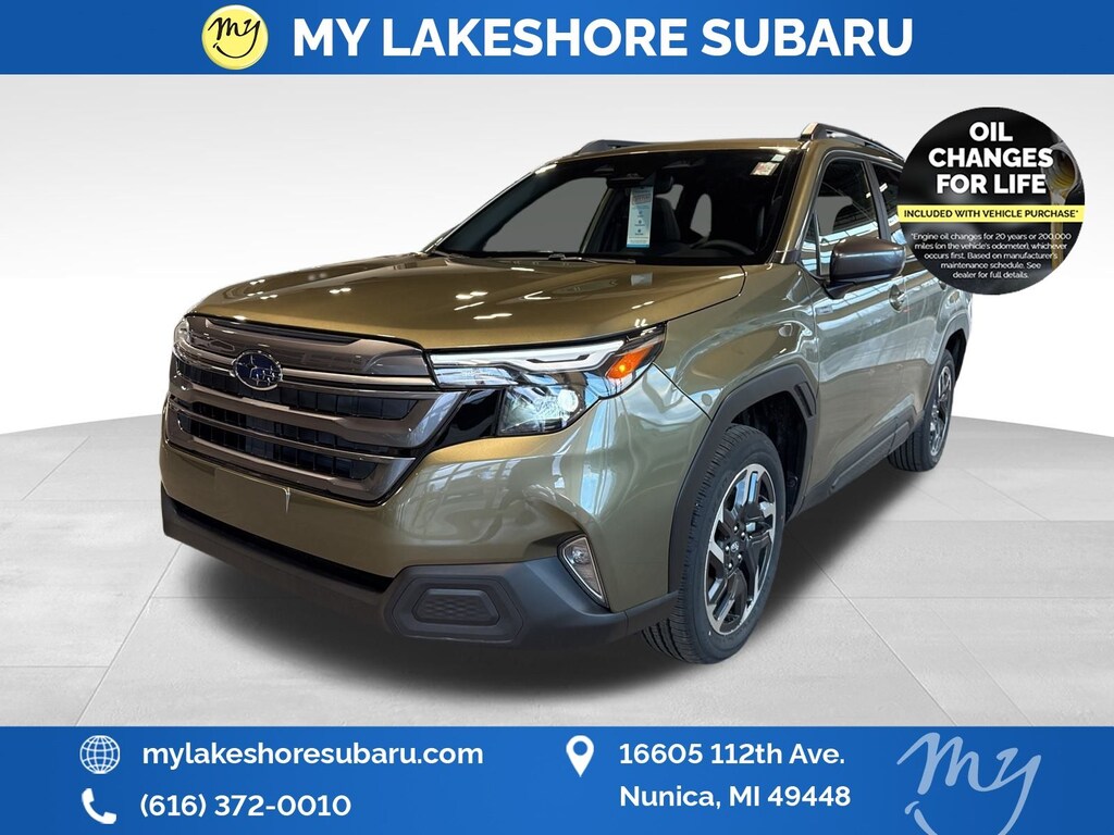 2.5L 4-Cylinder DOHC 16V. Autumn Green Metallic 2025 Subaru Forester Hybrid Premium AWD Lineartronic CVT 2.5L 4-Cylinder DOHC 16V
