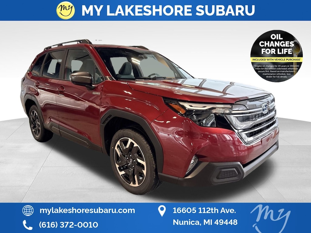 2.5L 4-Cylinder DOHC 16V. Crimson Red Pearl 2025 Subaru Forester Hybrid Premium AWD Lineartronic CVT 2.5L 4-Cylinder DOHC 16V