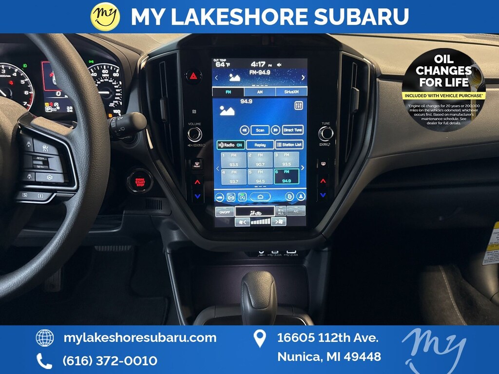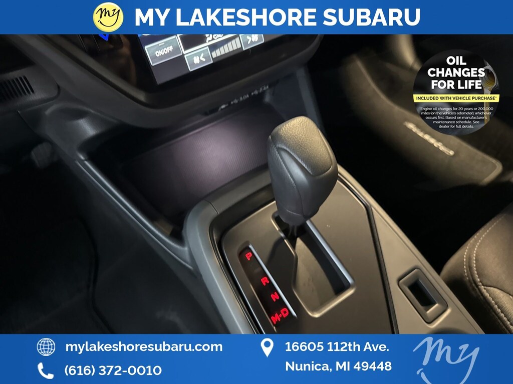 My Lakeshore Subaru offers Lifetime Nationwide Powertrain Warranty and Oil Changes for Life. Coverage on your engine, transmission and drive train, FREE 90-day full access to Sirius XM radio and coverage on all internally lubricating parts for as long as you own the vehicle in any state. Our lifetime nationwide warranty is set apart from most dealerships, because you can travel to any repair shop in the nation for repairs. Electric/Hybrid Models are not included in the lifetime powertrain warranty. Take advantage of our VIP experience by calling 231-867-6957 to schedule a test drive. Read our customer reviews and view our entire selection of preowned vehicles at www.mylakeshoresubaru.com, or stop by today, located at 16605 112th Ave, Nunica, MI 49448. 26/33 City/Highway MPG