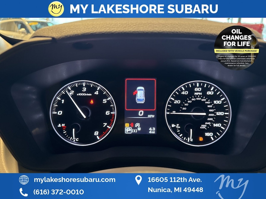 My Lakeshore Subaru offers Lifetime Nationwide Powertrain Warranty and Oil Changes for Life. Coverage on your engine, transmission and drive train, FREE 90-day full access to Sirius XM radio and coverage on all internally lubricating parts for as long as you own the vehicle in any state. Our lifetime nationwide warranty is set apart from most dealerships, because you can travel to any repair shop in the nation for repairs. Electric/Hybrid Models are not included in the lifetime powertrain warranty. Take advantage of our VIP experience by calling 231-867-6957 to schedule a test drive. Read our customer reviews and view our entire selection of preowned vehicles at www.mylakeshoresubaru.com, or stop by today, located at 16605 112th Ave, Nunica, MI 49448. 26/33 City/Highway MPG