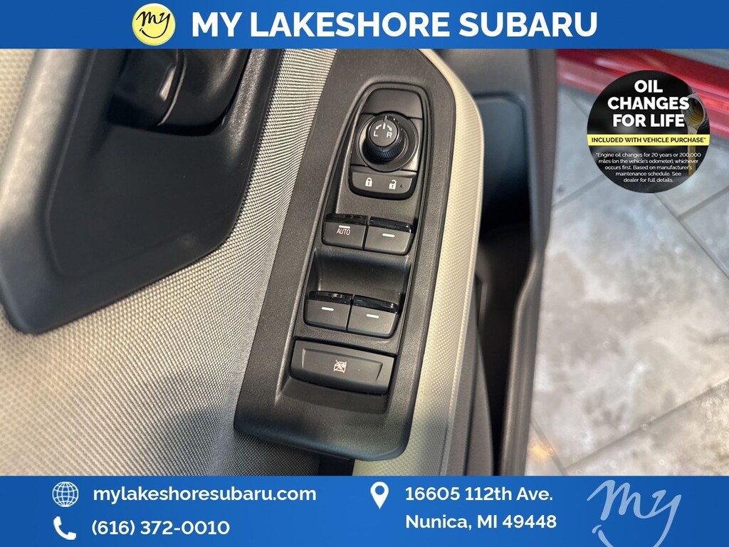 My Lakeshore Subaru offers Lifetime Nationwide Powertrain Warranty and Oil Changes for Life. Coverage on your engine, transmission and drive train, FREE 90-day full access to Sirius XM radio and coverage on all internally lubricating parts for as long as you own the vehicle in any state. Our lifetime nationwide warranty is set apart from most dealerships, because you can travel to any repair shop in the nation for repairs. Electric/Hybrid Models are not included in the lifetime powertrain warranty. Take advantage of our VIP experience by calling 231-867-6957 to schedule a test drive. Read our customer reviews and view our entire selection of preowned vehicles at www.mylakeshoresubaru.com, or stop by today, located at 16605 112th Ave, Nunica, MI 49448. 26/33 City/Highway MPG