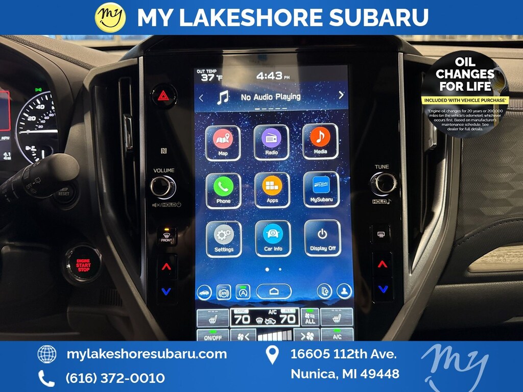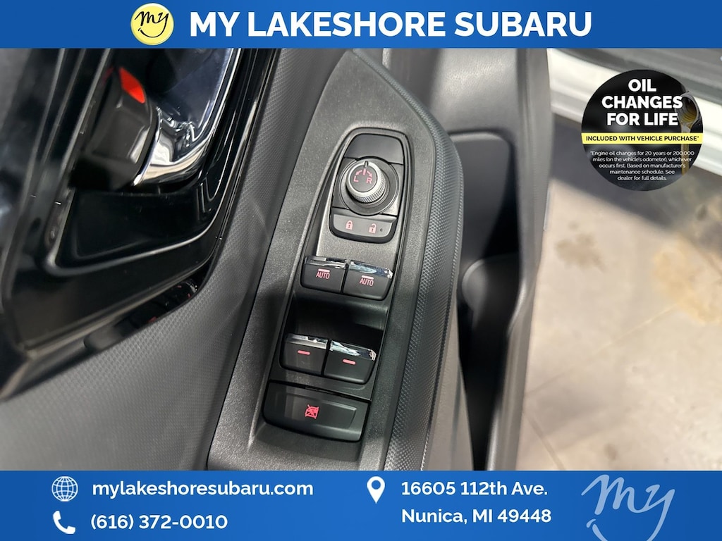 My Lakeshore Subaru offers Lifetime Nationwide Powertrain Warranty and Oil Changes for Life. Coverage on your engine, transmission and drive train, FREE 90-day full access to Sirius XM radio and coverage on all internally lubricating parts for as long as you own the vehicle in any state. Our lifetime nationwide warranty is set apart from most dealerships, because you can travel to any repair shop in the nation for repairs. Electric/Hybrid Models are not included in the lifetime powertrain warranty. Take advantage of our VIP experience by calling 231-867-6957 to schedule a test drive. Read our customer reviews and view our entire selection of preowned vehicles at www.mylakeshoresubaru.com, or stop by today, located at 16605 112th Ave, Nunica, MI 49448. 26/33 City/Highway MPG