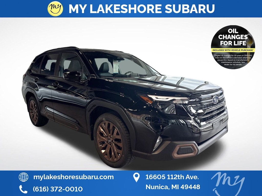 ABS brakes, Active Cruise Control, Alloy wheels, Electronic Stability Control, Front dual zone A/C, Heated door mirrors, Heated Front Bucket Seats, Heated front seats, Illuminated entry, Low tire pressure warning, Remote keyless entry, Traction control. Crystal Black Silica 2026 Subaru Forester Sport AWD Lineartronic CVT 2.5L 4-Cylinder DOHC 16V