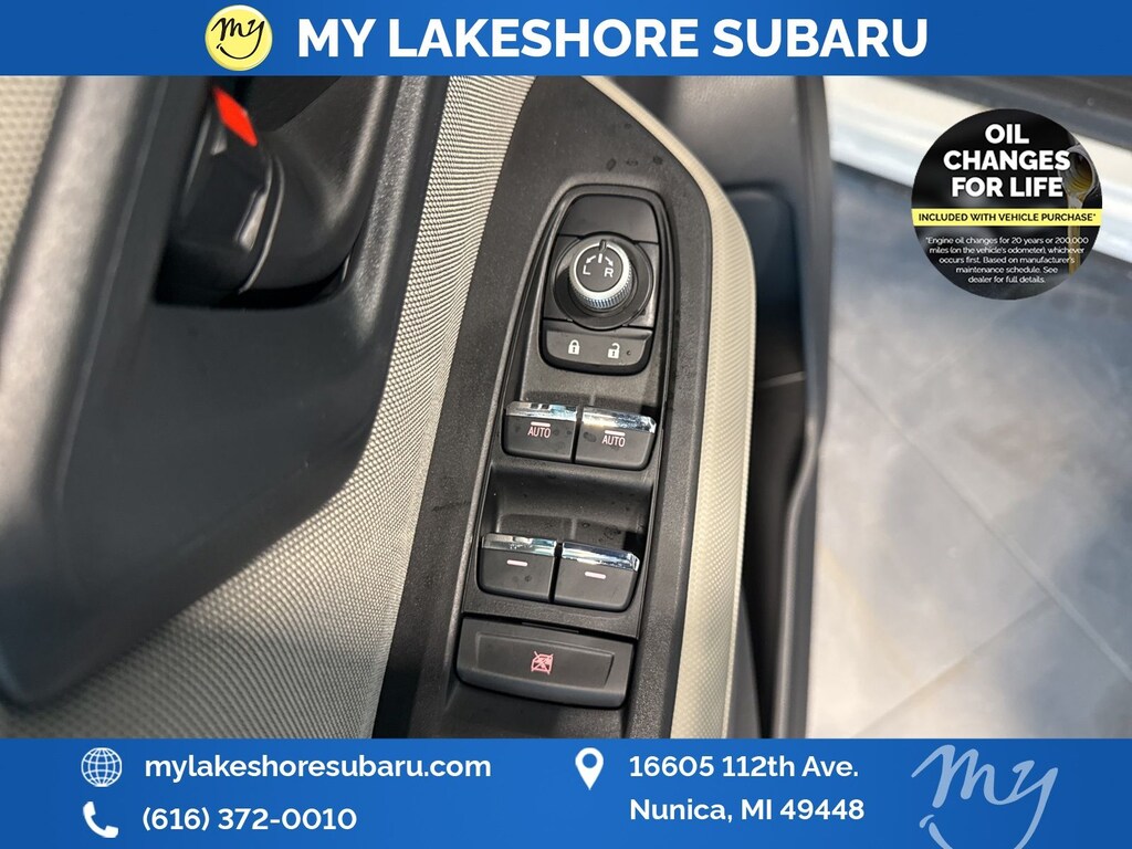 My Lakeshore Subaru offers Lifetime Nationwide Powertrain Warranty and Oil Changes for Life. Coverage on your engine, transmission and drive train, FREE 90-day full access to Sirius XM radio and coverage on all internally lubricating parts for as long as you own the vehicle in any state. Our lifetime nationwide warranty is set apart from most dealerships, because you can travel to any repair shop in the nation for repairs. Electric/Hybrid Models are not included in the lifetime powertrain warranty. Take advantage of our VIP experience by calling 231-867-6957 to schedule a test drive. Read our customer reviews and view our entire selection of preowned vehicles at www.mylakeshoresubaru.com, or stop by today, located at 16605 112th Ave, Nunica, MI 49448. 26/33 City/Highway MPG