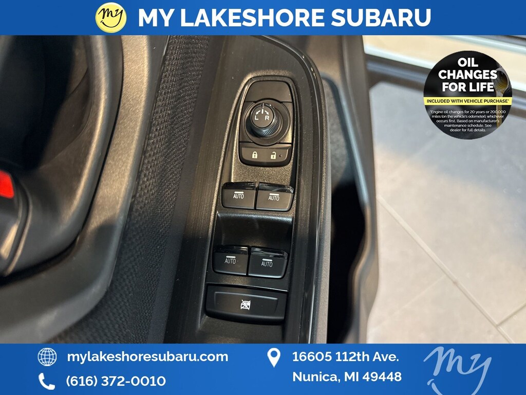 My Lakeshore Subaru offers Lifetime Nationwide Powertrain Warranty and Oil Changes for Life. Coverage on your engine, transmission and drive train, FREE 90-day full access to Sirius XM radio and coverage on all internally lubricating parts for as long as you own the vehicle in any state. Our lifetime nationwide warranty is set apart from most dealerships, because you can travel to any repair shop in the nation for repairs. Electric/Hybrid Models are not included in the lifetime powertrain warranty. Take advantage of our VIP experience by calling 231-867-6957 to schedule a test drive. Read our customer reviews and view our entire selection of preowned vehicles at www.mylakeshoresubaru.com, or stop by today, located at 16605 112th Ave, Nunica, MI 49448. 25/31 City/Highway MPG