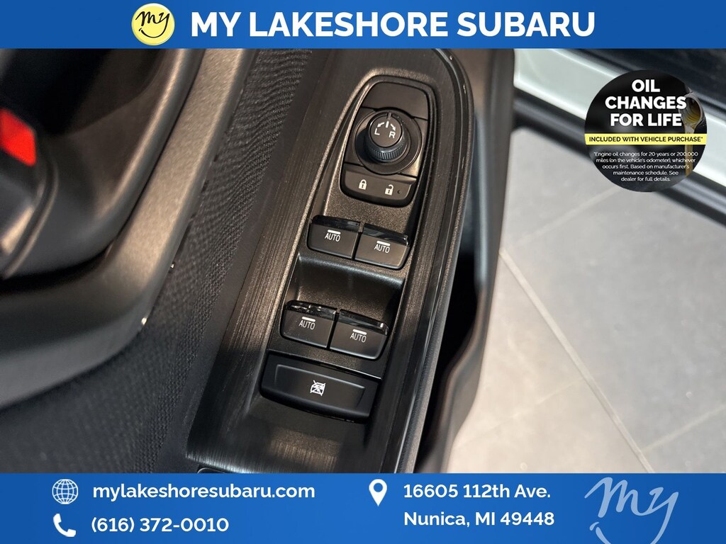 My Lakeshore Subaru offers Lifetime Nationwide Powertrain Warranty and Oil Changes for Life. Coverage on your engine, transmission and drive train, FREE 90-day full access to Sirius XM radio and coverage on all internally lubricating parts for as long as you own the vehicle in any state. Our lifetime nationwide warranty is set apart from most dealerships, because you can travel to any repair shop in the nation for repairs. Electric/Hybrid Models are not included in the lifetime powertrain warranty. Take advantage of our VIP experience by calling 231-867-6957 to schedule a test drive. Read our customer reviews and view our entire selection of preowned vehicles at www.mylakeshoresubaru.com, or stop by today, located at 16605 112th Ave, Nunica, MI 49448. 25/31 City/Highway MPG