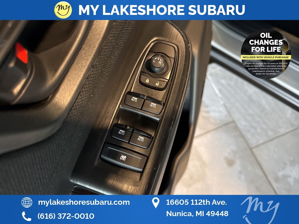 My Lakeshore Subaru offers Lifetime Nationwide Powertrain Warranty and Oil Changes for Life. Coverage on your engine, transmission and drive train, FREE 90-day full access to Sirius XM radio and coverage on all internally lubricating parts for as long as you own the vehicle in any state. Our lifetime nationwide warranty is set apart from most dealerships, because you can travel to any repair shop in the nation for repairs. Electric/Hybrid Models are not included in the lifetime powertrain warranty. Take advantage of our VIP experience by calling 231-867-6957 to schedule a test drive. Read our customer reviews and view our entire selection of preowned vehicles at www.mylakeshoresubaru.com, or stop by today, located at 16605 112th Ave, Nunica, MI 49448. 25/31 City/Highway MPG