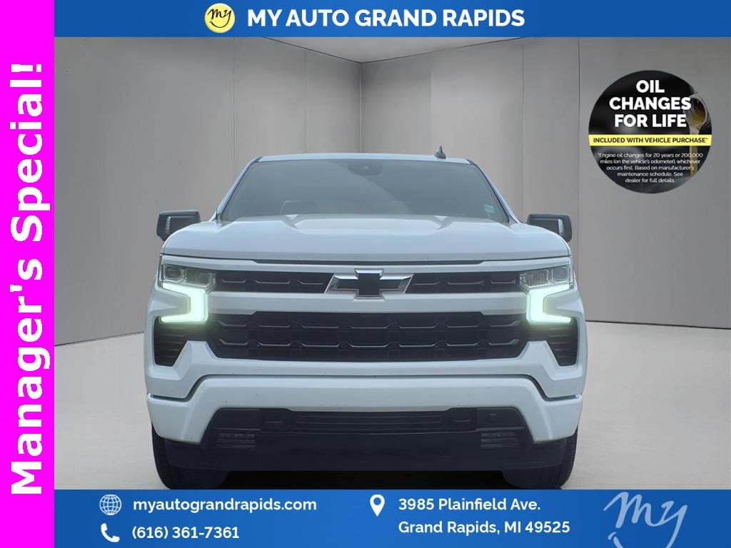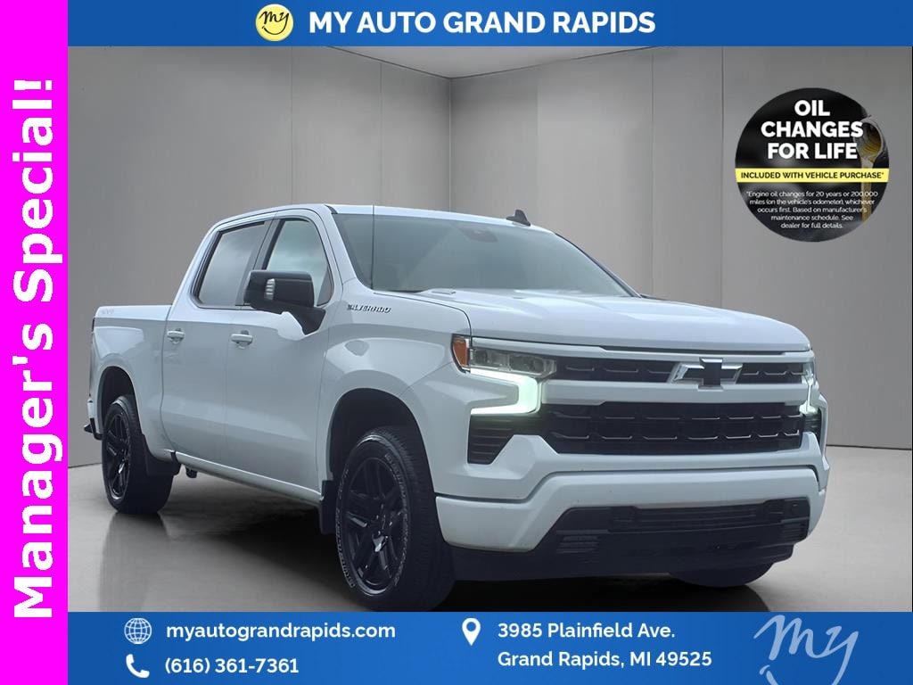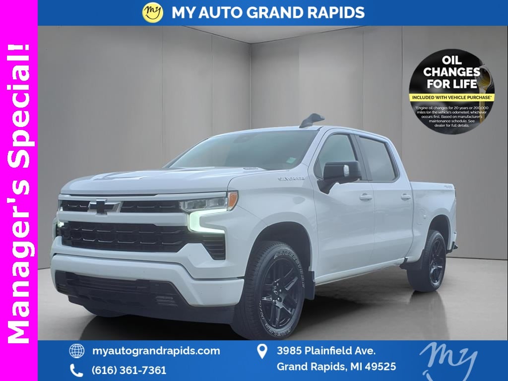 LOADED W/ OPTIONS! *OIL CHANGES for LIFE*,*BLUETOOTH*, *LEATHER HEATED POWER SEATS*, *REMOTE START*, *TOW PACKAGE*, Silverado 1500 RST, 10-Speed Automatic, 4WD, Gideon/Very Dark Atmosphere w/Leather-Appointed Front Seat Trim, 10-Way Power Driver Seat w/Lumbar, 12.3" Multicolor Reconfigurable Digital Display, 120-Volt Bed Mounted Power Outlet, 120-Volt Instrument Panel Power Outlet, 6-Speaker Audio System, Adaptive Cruise Control, All Star Edition Plus, All-Star Edition, Auto-Locking Rear Differential, Bluetooth® For Phone, Chevrolet Connected Access Capable, Chevytec Spray-On Black Bedliner, Color-Keyed Carpeting Floor Covering, Compass, Convenience Package, Convenience Package II, Deep-Tinted Glass, Dual Rear USB Ports (Charge Only), Dual-Zone Automatic Climate Control, Electric Rear-Window Defogger, Electrical Steering Column Lock, Electronic Cruise Control, EZ Lift Power Lock & Release Tailgate, Front Frame-Mounted Black Recovery Hooks, Front LED Fog Lamps, Front Rubberized Vinyl Floor Mats, HD Rear Vision Camera, HD Surround Vision, Heated Driver & Front Outboard Passenger Seats, Heated Power-Adjustable Outside Mirrors, Heated Steering Wheel, High Capacity Suspension Package, High Gloss Black Mirror Caps, Hitch Guidance, Hitch Guidance w/Hitch View, Inside Rear-View Mirror w/Tilt, Integrated Trailer Brake Controller, Keyless Open & Start, Leather Package, Leather Wrapped Steering Wheel, Leather-Appointed Front Seat Trim, LED Cargo Area Lighting, Manual Tilt/Telescoping Steering Column, OnStar & Chevrolet Connected Services Capable, Perimeter Lighting, Power Front Windows w/Driver Express Up/Down, Power Front Windows w/Passenger Express Down, Power Rear Windows w/Express Down, Power Sliding Rear Window w/Rear Defogger, Preferred Equipment Group 1SP, Premium Bose 7-Speaker Sound System, Protection Package, Rear 60/40 Folding Bench Seat (Folds Up), Rear Cross Traffic Alert-Braking, Rear Park Assist, Rear Pedestrian Detection, Rear Rubberized-Vinyl Floor Mats, Rear Wheelhouse Liners, Remote Vehicle Starter System, RST All Star Premium Package, Safety Package, SiriusXM w/360L, Standard Suspension Package, Standard Tailgate, Steering Wheel Audio Controls, Theft Deterrent System (Unauthorized Entry), Trailer Camera Provisions, Trailer Side Blind Zone Alert, Trailering App, Trailering Package, Universal Home Remote, Up-Level Rear Seat w/Storage Package, Wi-Fi Hot Spot Capable, Wireless Phone Projection. My Auto Grand Rapids is your #1 choice in Michigan to get the BEST PRICE on used vehicles and BEST value for your trade. The My Auto Grand Rapids team is ready to provide you with a world-class experience, ensuring that you find the perfect vehicle that fits all your needs. Every vehicle has been through a full safety inspection, completed by certified technicians and fully detailed. We sell many makes and models with years from 2025, 2024, 2023, 2022, 2021, 2020, 2019, 2018, 2017, 2016, 2015, 2014, 2013, 2012, 2011, 2010, 2009 and used makes Audi, BMW, Chevrolet, Toyota, Volkswagen, Kia, Hyundai, Mercedes, Dodge, Chrysler, Jeep, Ram, Lincoln, Ford, Nissan, Honda, Mitsubishi, Subaru, and many models like Altima, Murano, Pathfinder, Kicks, Taos, Beetle, Jetta, Outlander, Eclipse Sport, Frontier, Rogue, Atlas, Versa, and more. Take advantage of our VIP experience by calling 616-361-7361 to schedule a test drive. Read our customer reviews and view our entire selection of preowned vehicles at www.myautograndrapids.com, or stop by today, located at 3985 Plainfield Ave NE, Grand Rapids, MI 49525. Priced below KBB Fair Purchase Price!