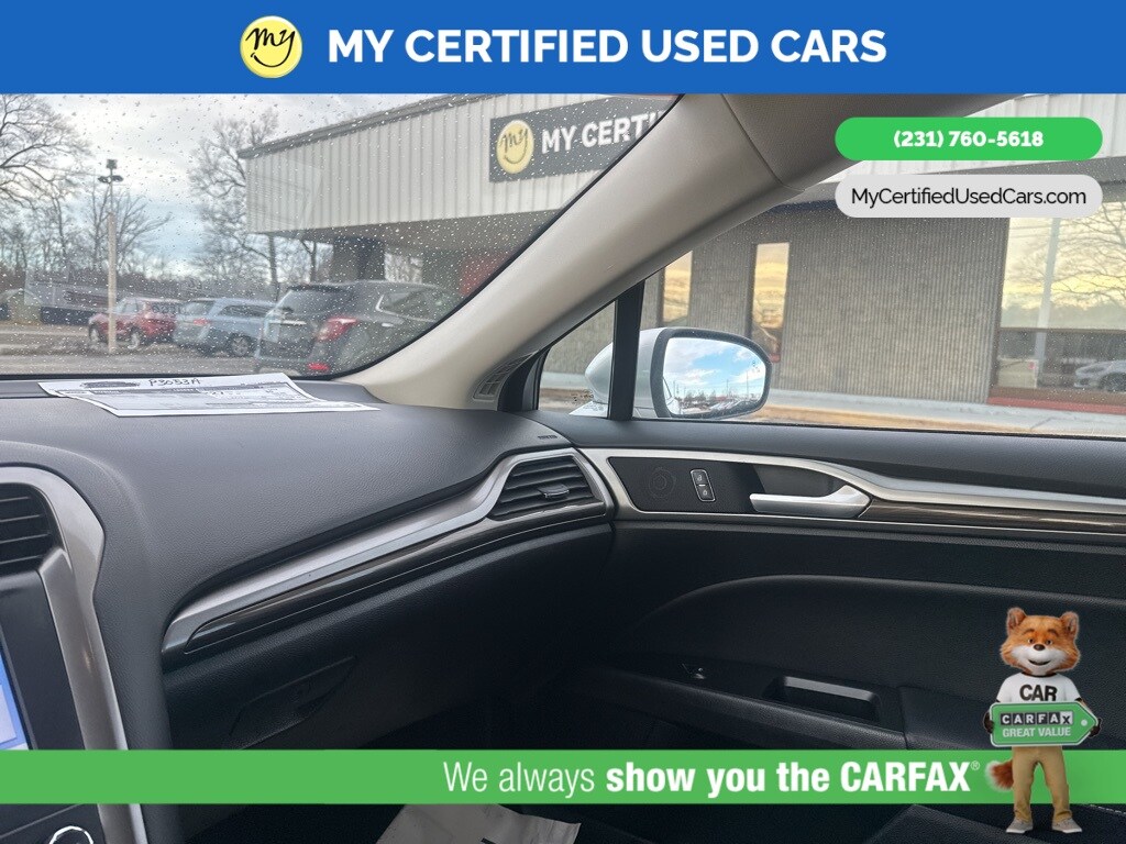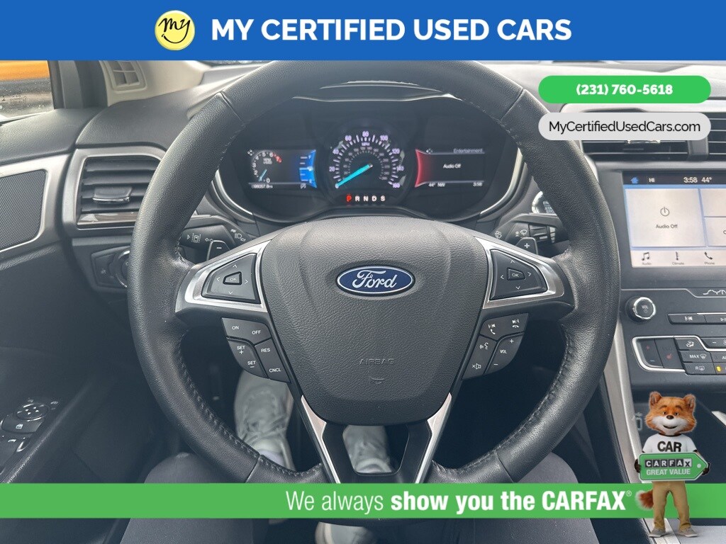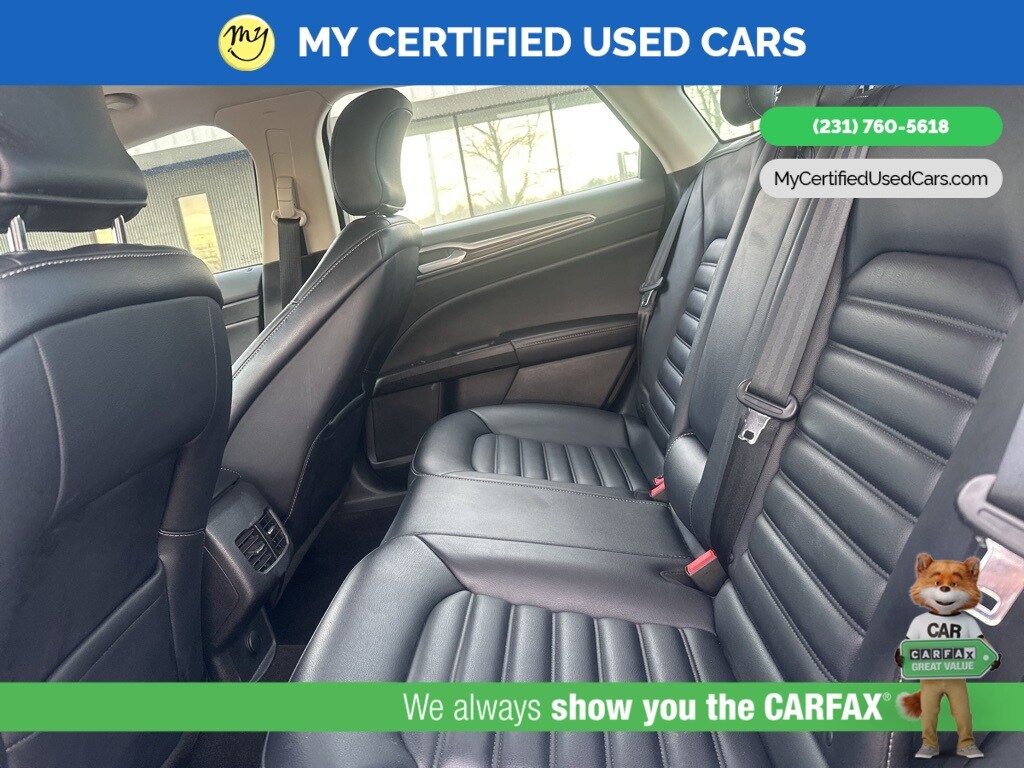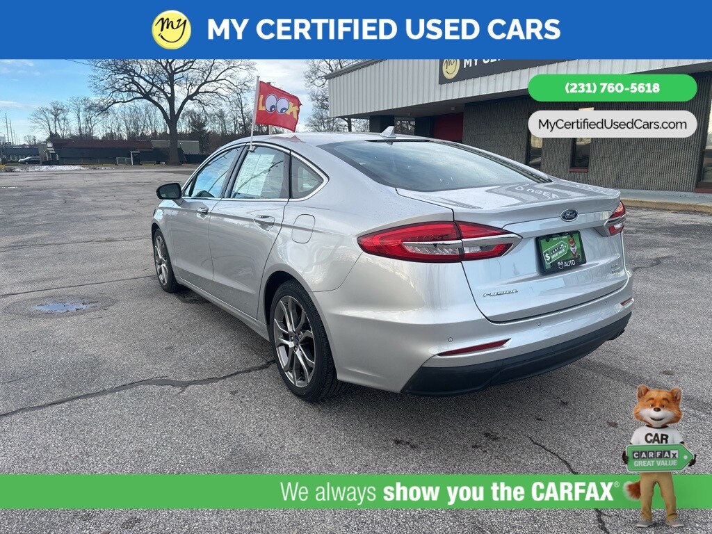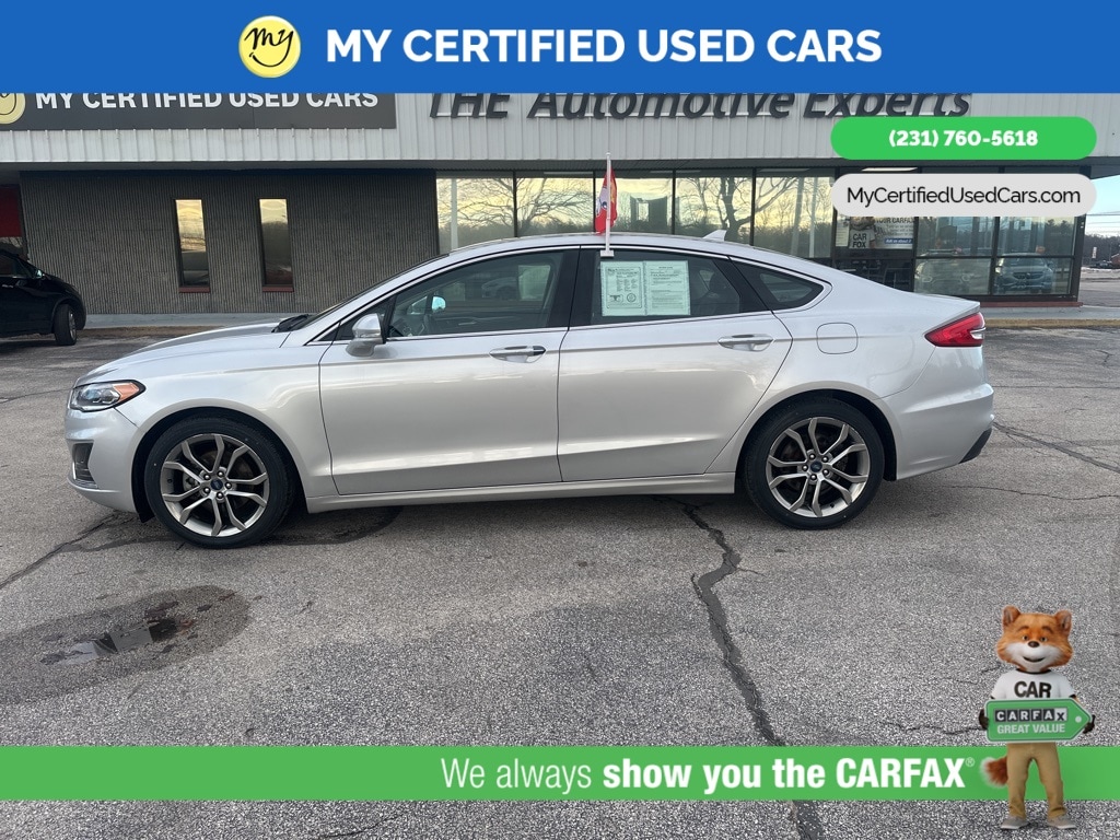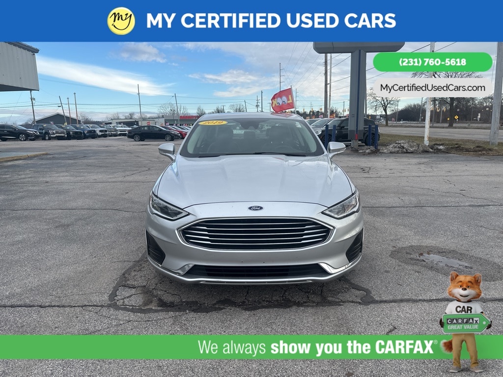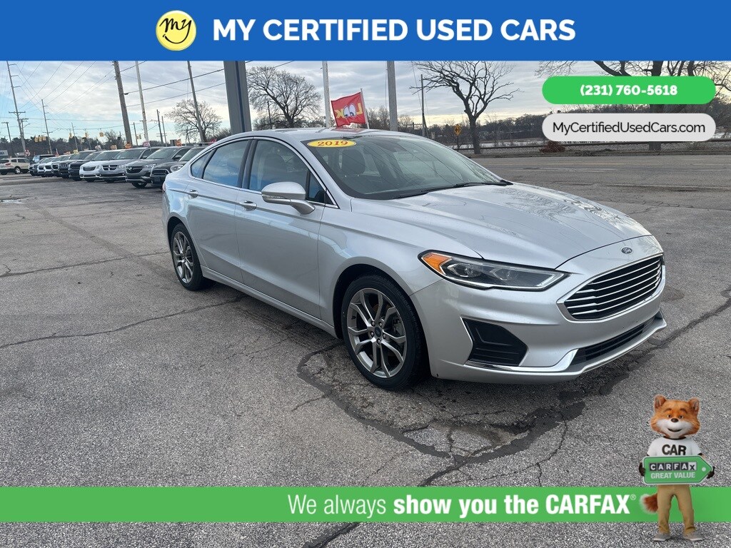 *LOCAL TRADE* *FULLY SERVICED* ***2019 FORD FUSION SEL*** *SUPER BUY*, *VERY CLEAN*, **REMOTE START**, *LEATHER HEATED POWER SEATS* *BLIND SPOT MONITORING SYSTEM*, *LANE DEPARTURE WARNING*, *PREMIUM SOUND* *SUNROOF*, *HANDSFREE BLUETOOTH*, *REARVIEW CAMERA*, *BACKUP SENSORS*, *APPLE CARPLAY & ANDROID AUTO**, 11 Speakers, Auto High-beam Headlights, Equipment Group 200A, Memory seat, Power driver seat. MY Certified Used Cars of Muskegon is your #1 choice in Michigan to get the BEST PRICE on used vehicles and BEST value for your trade. The MY Certified Used Cars team is ready to provide you with a world-class experience, ensuring that you find the perfect vehicle that fits all your needs. Every vehicle has been through a full safety inspection completed by certified technicians and fully detailed. We sell many makes and models, Pre-Owned Vehicles with years from 2025-2024-2023-2022-2021-2020-2019-2018-2017-2016-2015-2014-2013-2012-2011-2010-2009-2008-2007 and all makes Audi, BMW, Chevrolet, Toyota, Volkswagen, Kia, Hyundai, Mercedes, Dodge, Chrysler, Jeep, Ram, Lincoln, Honda, Subaru, and many models like Bronco, Bronco Sport, Edge, Escapes, Expedition, Explorer, Fusions, Focus, Flex, F-150 Series, F-250, F-350, Super Duty Diesel Trucks, Maverick, Mustang MACH-E, Mustang, Ranger, Transit, Wrangler, Grand Cherokee, Grand Cherokee L, Wagoneer, Gladiator, Grand Caravan, RAM, RAM HEMI, and more. Take advantage of our VIP experience by calling 231-760-5618 to schedule a test drive. Read our customer reviews at www.mycertifiedusedcars.com/testimonials or view our entire selection of preowned vehicles at www.mycertifiedusedcars.com, or stop by today, located at 3692 Airline Rd. Muskegon, MI 49444. Ingot Silver 2019 Ford Fusion SEL FWD 6-Speed Automatic 1.5L EcoBoost Clean CARFAX.