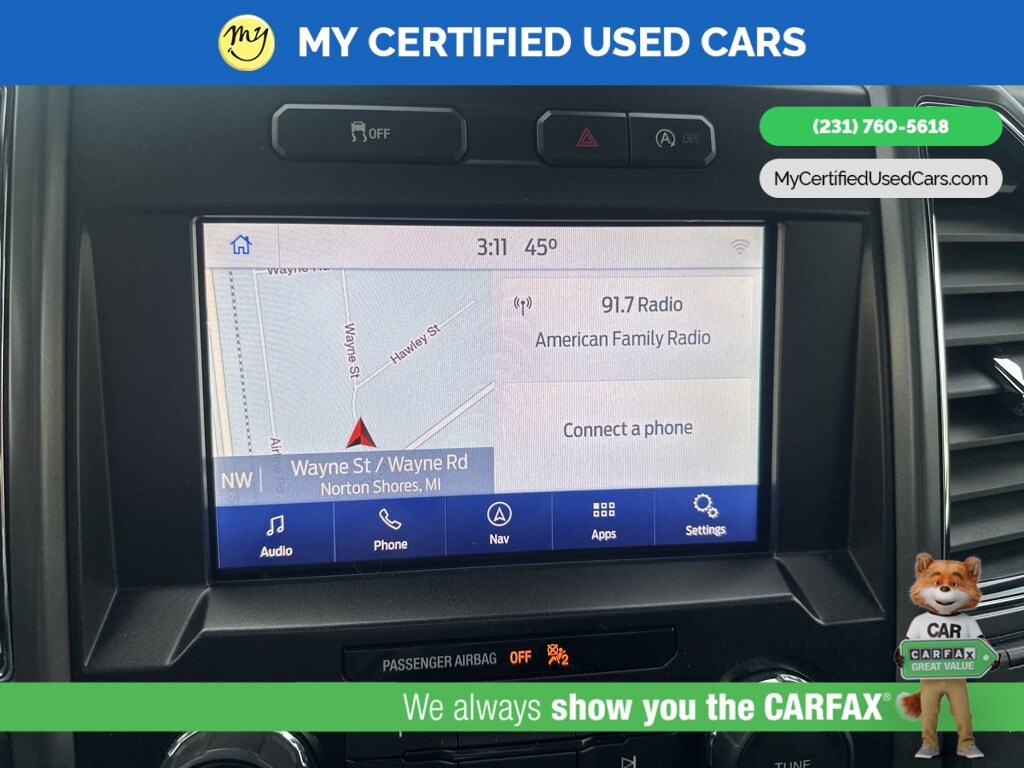 *SUPER BUY* ***2020 FORD F-150 XLT 4X4***, *FULLY SERVICED**, *HEATED SEATS*, *LANE DEPARTURE WARNING*, *NAVIGATION SYSTEM*, *PANORAMIC MOONROOF*, *REARVIEW CAMERA*, *BACKUP SENSORS* *APPLE CARPLAY & ANDROID AUTO**, 10-Way Power Driver & Passenger Seats, 2-Bar Style Grille w/2 Minor Bars Painted Dark, 2-Bar Style Grille w/Chrome 2 Minor Bars, 2.7L V6 EcoBoost Payload Package, 4.2" Productivity Screen in Instrument Cluster, Accent-Color Step Bars, Auto High-beam Headlights, Auto-Dimming Rear-View Mirror, Black Running Boards, Body-Color Door & Tailgate Handles, Body-Color Front & Rear Bumpers, Body-Color Surround Grille w/Black Mesh Insert, Box Side Decals, Chrome Door & Tailgate Handles w/Body-Color Bezel, Chrome Step Bars, Class IV Trailer Hitch Receiver, Cloth 40/20/40 Front Seat, Electronic Locking w/3.55 Axle Ratio, Equipment Group 302A Luxury, Exterior Parking Camera Rear, Fixed Backlight w/Privacy Glass, GVWR: 6,500 lbs Payload Package, GVWR: 6,600 lbs Payload Package, Headlamps w/Dark Housing, Heated Front Seats, Leather-Wrapped Steering Wheel, LED Box Lighting, Power Glass Heated Sideview Mirrors, Power-Adjustable Pedals, Power-Sliding Rear Window, Rear Under-Seat Storage, Rear Window Defroster, Single-Tip Chrome Exhaust, SiriusXM Radio, Wheels: 20" Unique Premium Tarnished Dark Painted, XLT Black Appearance Package, XLT Chrome Appearance Package, XLT Power Equipment Group, XLT Sport Appearance Package. MY Certified Used Cars of Muskegon is your #1 choice in Michigan to get the BEST PRICE on used vehicles and BEST value for your trade. The MY Certified Used Cars team is ready to provide you with a world-class experience, ensuring that you find the perfect vehicle that fits all your needs. Every vehicle has been through a full safety inspection completed by certified technicians and fully detailed. We sell many makes and models, Pre-Owned Vehicles with years from 2025-2024-2023-2022-2021-2020-2019-2018-2017-2016-2015-2014-2013-2012-2011-2010-2009-2008-2007 and all makes Audi, BMW, Chevrolet, Toyota, Volkswagen, Kia, Hyundai, Mercedes, Dodge, Chrysler, Jeep, Ram, Lincoln, Honda, Subaru, and many models like Bronco, Bronco Sport, Edge, Escapes, Expedition, Explorer, Fusions, Focus, Flex, F-150 Series, F-250, F-350, Super Duty Diesel Trucks, Maverick, Mustang MACH-E, Mustang, Ranger, Transit, Wrangler, Grand Cherokee, Grand Cherokee L, Wagoneer, Gladiator, Grand Caravan, RAM, RAM HEMI, and more. Take advantage of our VIP experience by calling 231-760-5618 to schedule a test drive. Read our customer reviews at www.mycertifiedusedcars.com/testimonials or view our entire selection of preowned vehicles at www.mycertifiedusedcars.com, or stop by today, located at 3692 Airline Rd. Muskegon, MI 49444. Black Metallic 2020 Ford F-150 XLT 4WD 10-Speed Automatic 2.7L V6 EcoBoost