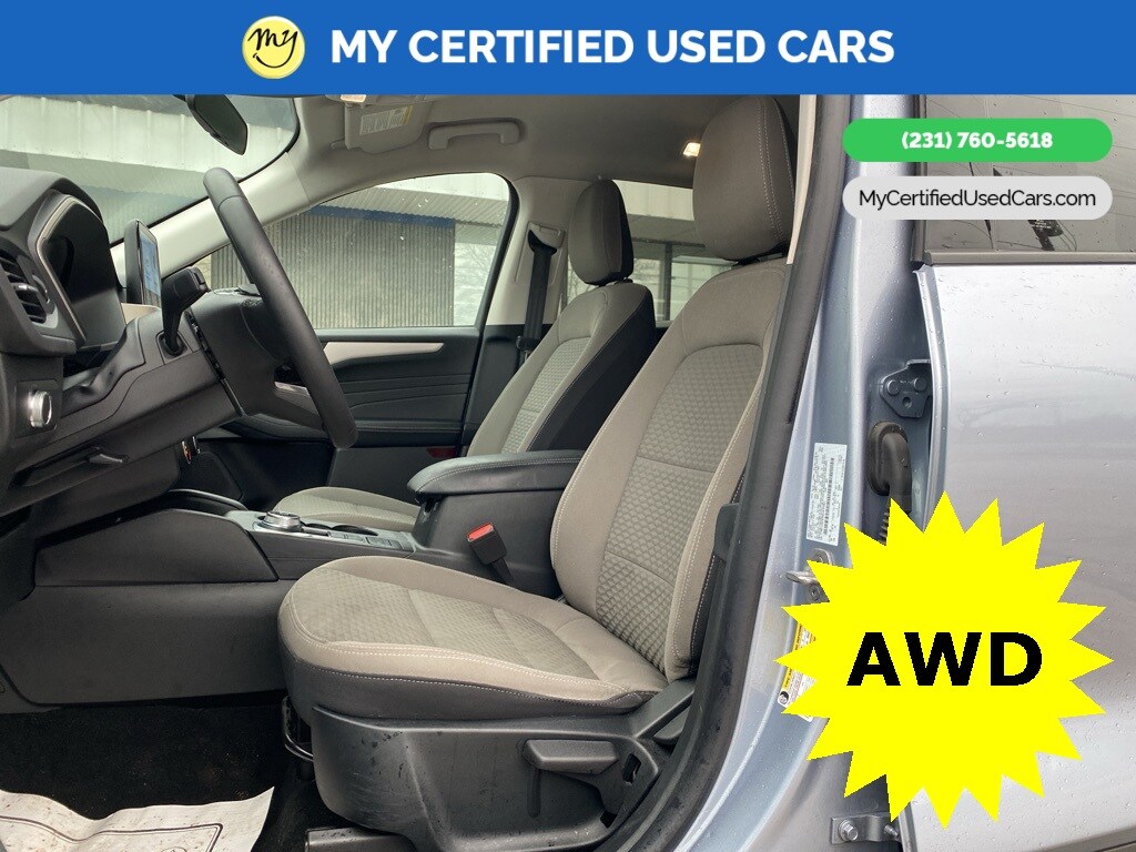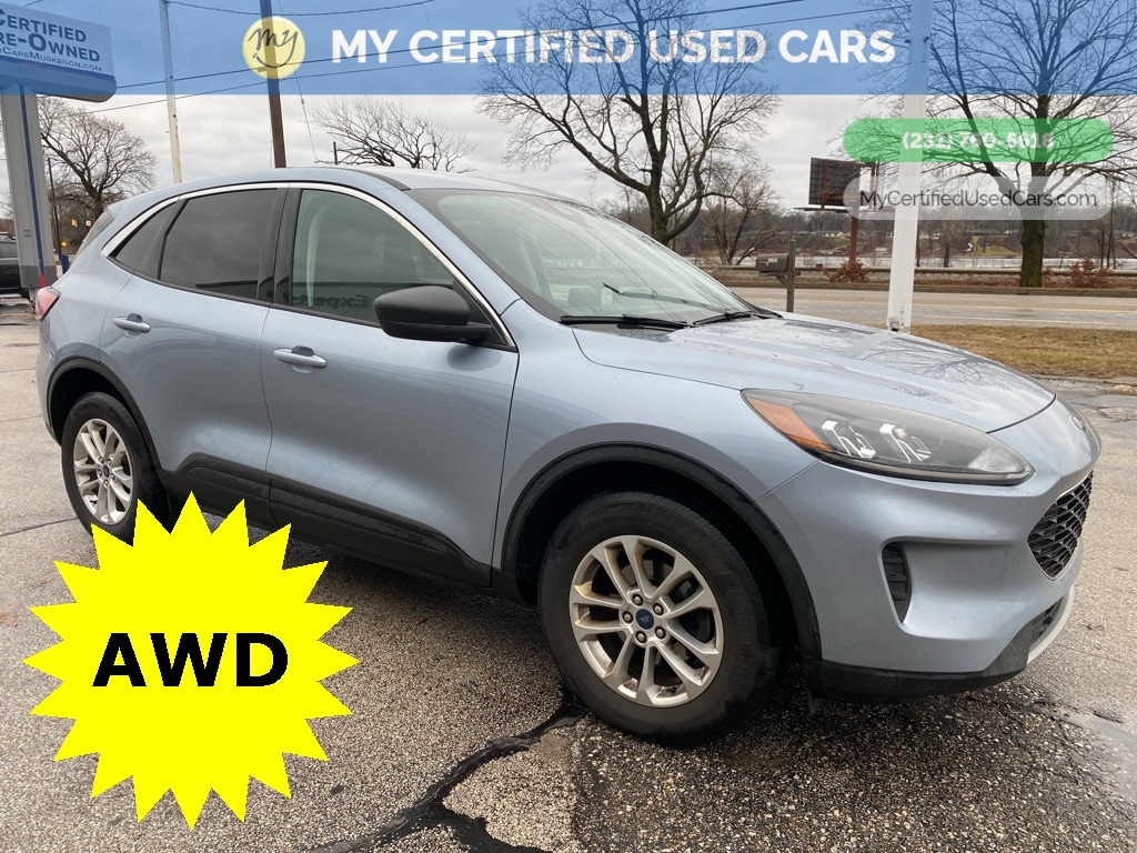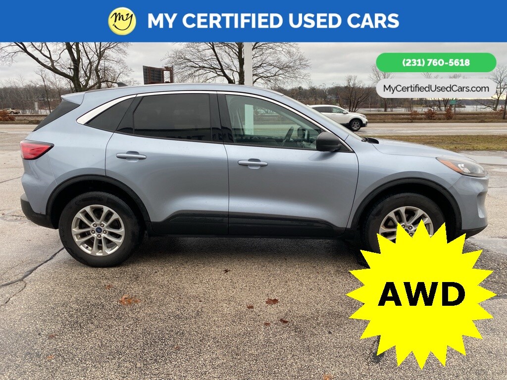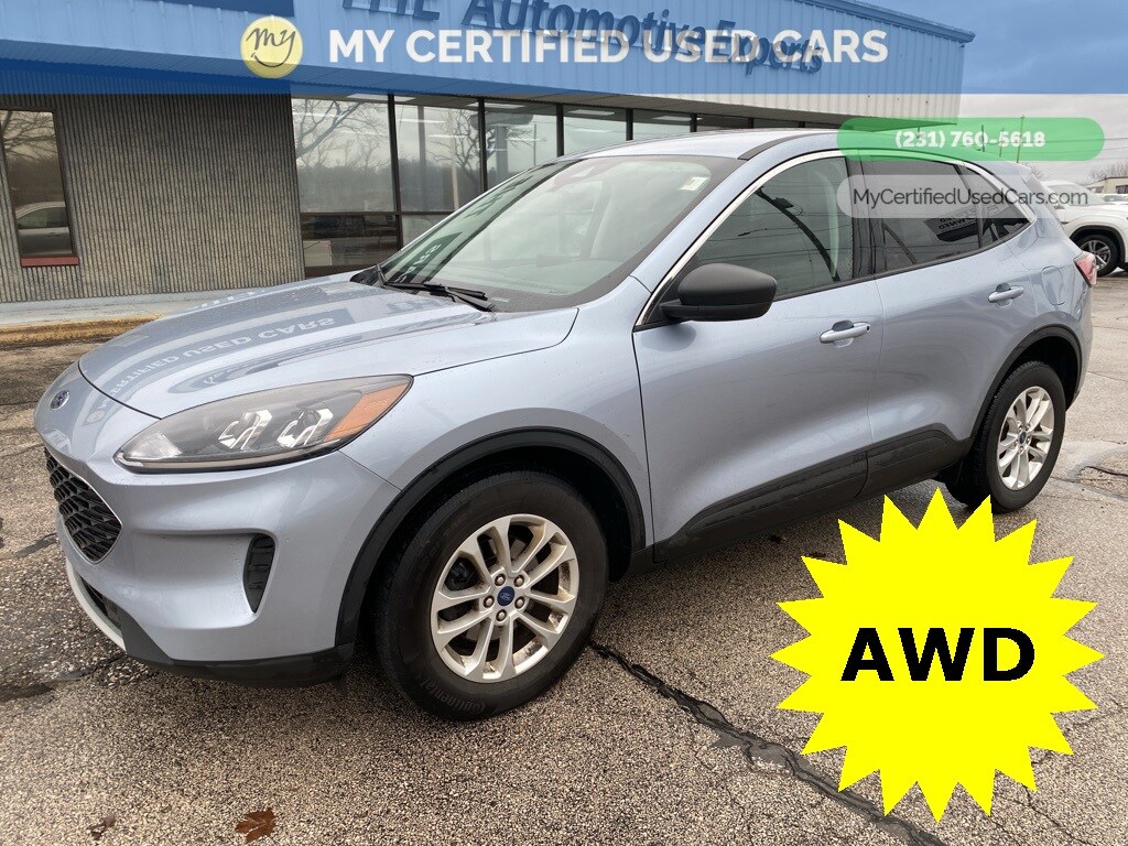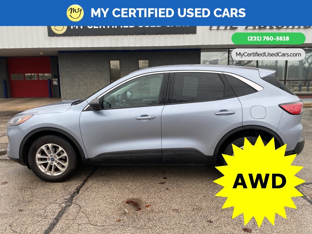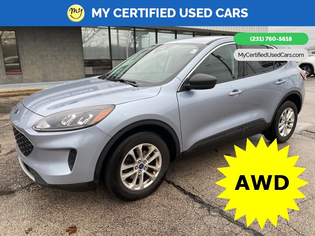 *SUPER BUY* ***2022 FORD ESCAPE SE AWD*** *VERY CLEAN* *REMOTE START* *HEATED SEATS*, *HEATED STEERING WHEEL* ***ADVANCETRAC WITH RSC***, **FORD CO-PILOT 360**, *BLIND SPOT MONITORING SYSTEM*, *HANDSFREE BLUETOOTH*, *REARVIEW CAMERA*, *ADAPTIVE CRUISE*, *APPLE CARPLAY & ANDROID AUTO* Cold Weather Package, Electronic Automatic Temperature Control (EATC), Equipment Group 200A, Heated & Premium Wrapped Steering Wheel, Heated Front Row Seats, Heated Sideview Mirrors, Remote Start System w/86C. MY Certified Used Cars of Muskegon is your #1 choice in Michigan to get the BEST PRICE on used vehicles and BEST value for your trade. The MY Certified Used Cars team is ready to provide you with a world-class experience, ensuring that you find the perfect vehicle that fits all your needs. Every vehicle has been through a full safety inspection completed by certified technicians and fully detailed. We sell many makes and models, Pre-Owned Vehicles with years from 2025-2024-2023-2022-2021-2020-2019-2018-2017-2016-2015-2014-2013-2012-2011-2010-2009-2008-2007 and all makes Audi, BMW, Chevrolet, Toyota, Volkswagen, Kia, Hyundai, Mercedes, Dodge, Chrysler, Jeep, Ram, Lincoln, Honda, Subaru, and many models like Bronco, Bronco Sport, Edge, Escapes, Expedition, Explorer, Fusions, Focus, Flex, F-150 Series, F-250, F-350, Super Duty Diesel Trucks, Maverick, Mustang MACH-E, Mustang, Ranger, Transit, Wrangler, Grand Cherokee, Grand Cherokee L, Wagoneer, Gladiator, Grand Caravan, RAM, RAM HEMI, and more. Take advantage of our VIP experience by calling 231-760-5618 to schedule a test drive. Read our customer reviews at www.mycertifiedusedcars.com/testimonials or view our entire selection of preowned vehicles at www.mycertifiedusedcars.com, or stop by today, located at 3692 Airline Rd. Muskegon, MI 49444. New Price! CARFAX One-Owner. Iced Blue Silver Metallic 2022 Ford Escape SE AWD 8-Speed Automatic 1.5L EcoBoost