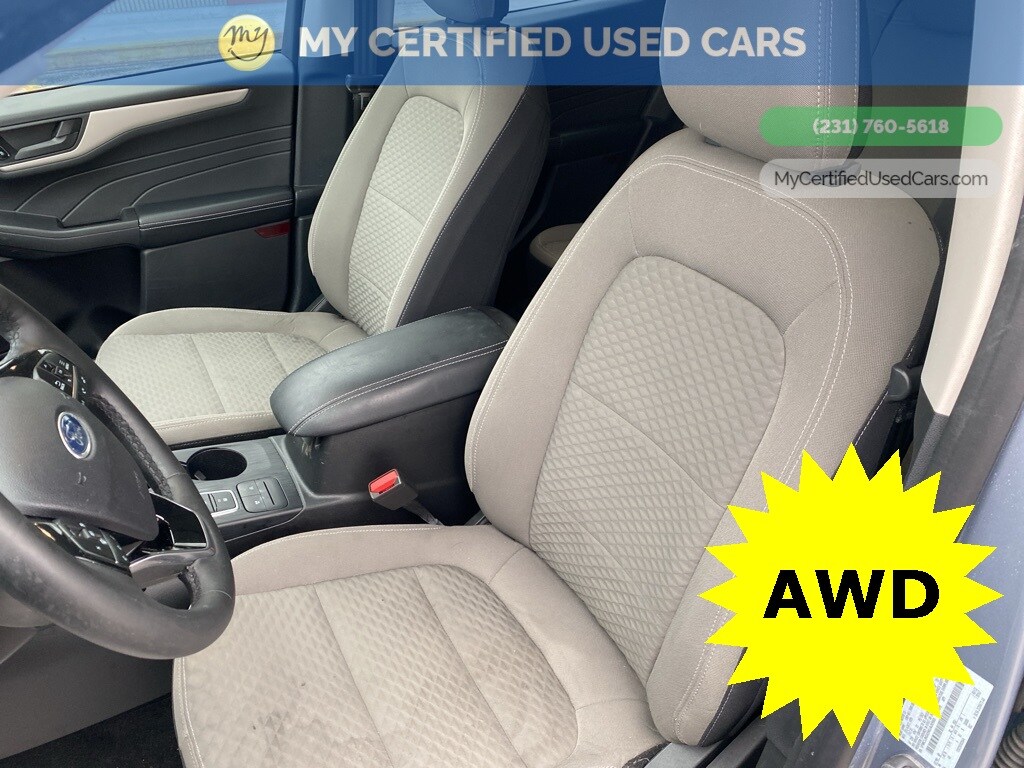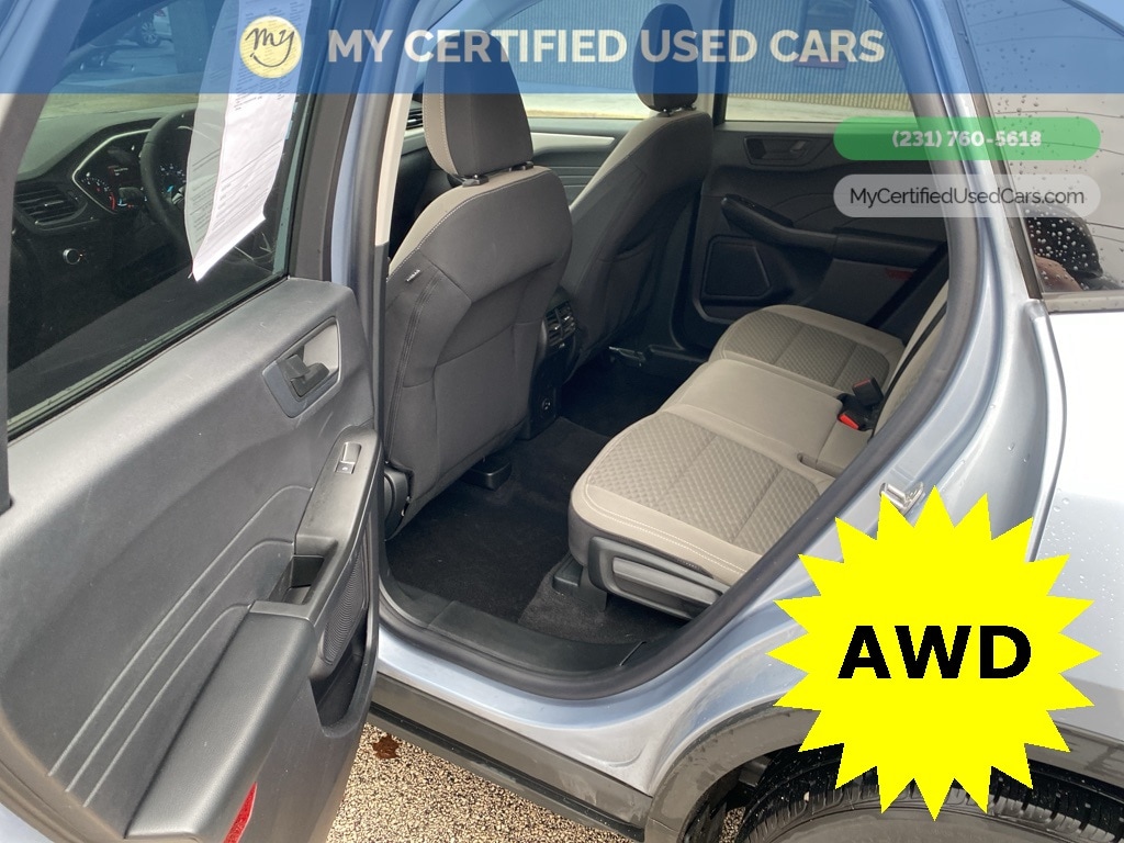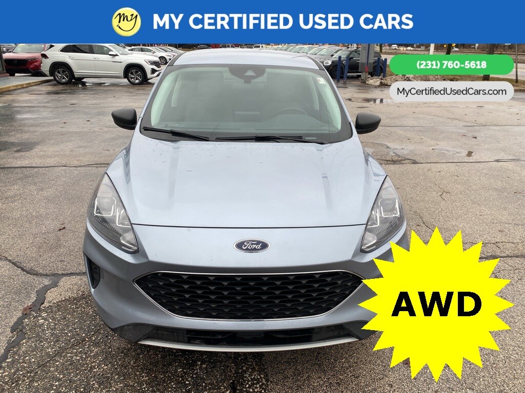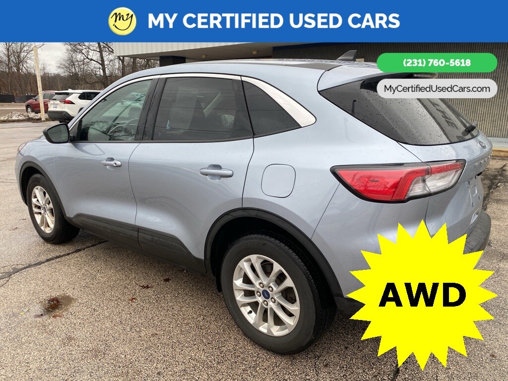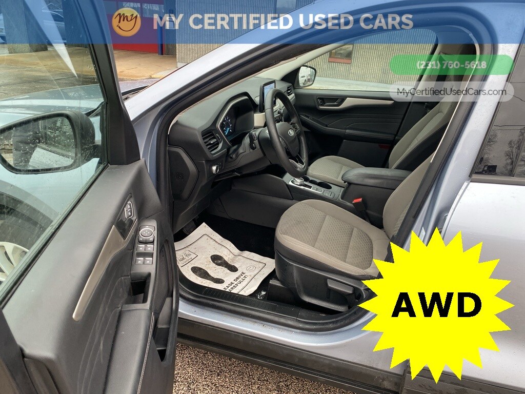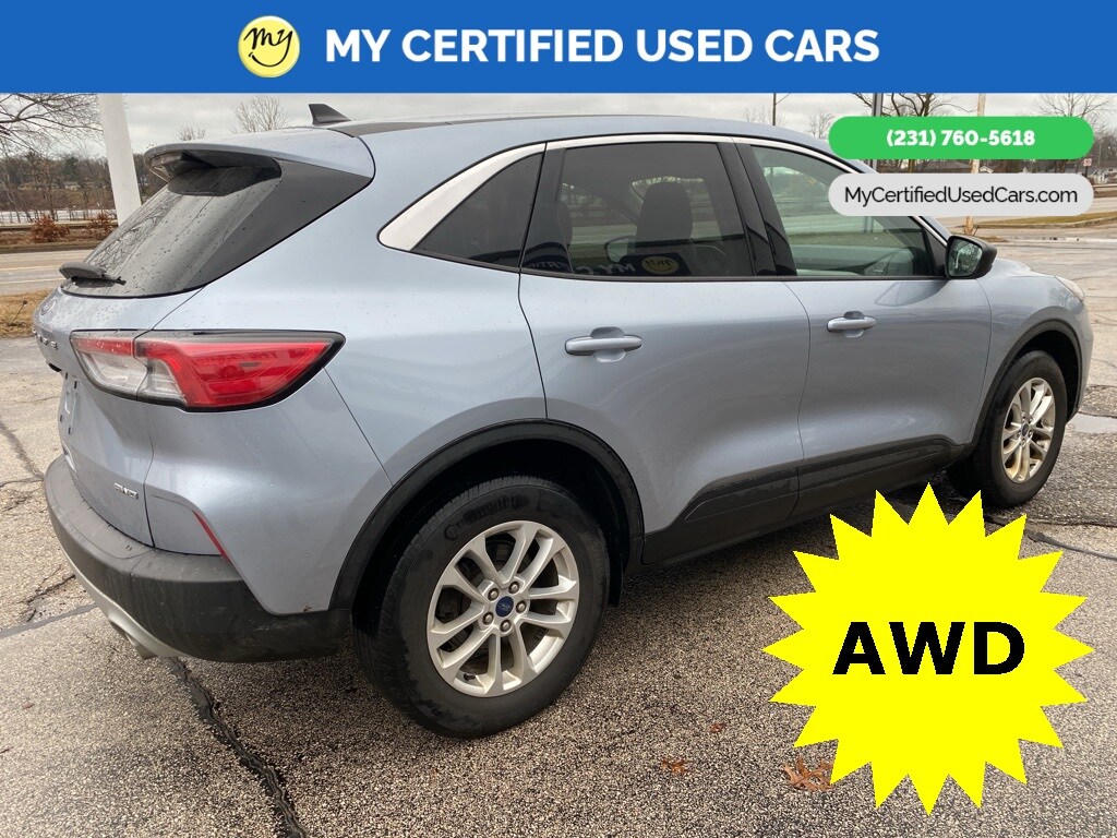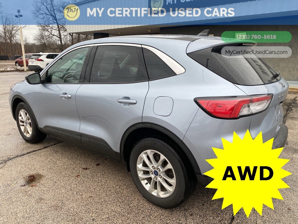 *SUPER BUY* ***2022 FORD ESCAPE SE AWD*** *VERY CLEAN* *REMOTE START* *HEATED SEATS*, *HEATED STEERING WHEEL* ***ADVANCETRAC WITH RSC***, **FORD CO-PILOT 360**, *BLIND SPOT MONITORING SYSTEM*, *HANDSFREE BLUETOOTH*, *REARVIEW CAMERA*, *ADAPTIVE CRUISE*, *APPLE CARPLAY & ANDROID AUTO* Cold Weather Package, Electronic Automatic Temperature Control (EATC), Equipment Group 200A, Heated & Premium Wrapped Steering Wheel, Heated Front Row Seats, Heated Sideview Mirrors, Remote Start System w/86C. MY Certified Used Cars of Muskegon is your #1 choice in Michigan to get the BEST PRICE on used vehicles and BEST value for your trade. The MY Certified Used Cars team is ready to provide you with a world-class experience, ensuring that you find the perfect vehicle that fits all your needs. Every vehicle has been through a full safety inspection completed by certified technicians and fully detailed. We sell many makes and models, Pre-Owned Vehicles with years from 2025-2024-2023-2022-2021-2020-2019-2018-2017-2016-2015-2014-2013-2012-2011-2010-2009-2008-2007 and all makes Audi, BMW, Chevrolet, Toyota, Volkswagen, Kia, Hyundai, Mercedes, Dodge, Chrysler, Jeep, Ram, Lincoln, Honda, Subaru, and many models like Bronco, Bronco Sport, Edge, Escapes, Expedition, Explorer, Fusions, Focus, Flex, F-150 Series, F-250, F-350, Super Duty Diesel Trucks, Maverick, Mustang MACH-E, Mustang, Ranger, Transit, Wrangler, Grand Cherokee, Grand Cherokee L, Wagoneer, Gladiator, Grand Caravan, RAM, RAM HEMI, and more. Take advantage of our VIP experience by calling 231-760-5618 to schedule a test drive. Read our customer reviews at www.mycertifiedusedcars.com/testimonials or view our entire selection of preowned vehicles at www.mycertifiedusedcars.com, or stop by today, located at 3692 Airline Rd. Muskegon, MI 49444. New Price! CARFAX One-Owner. Iced Blue Silver Metallic 2022 Ford Escape SE AWD 8-Speed Automatic 1.5L EcoBoost