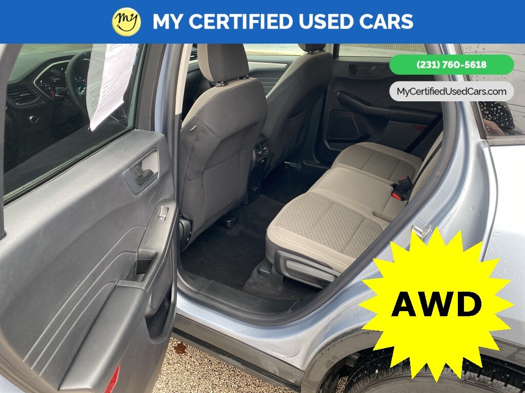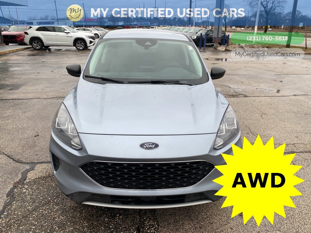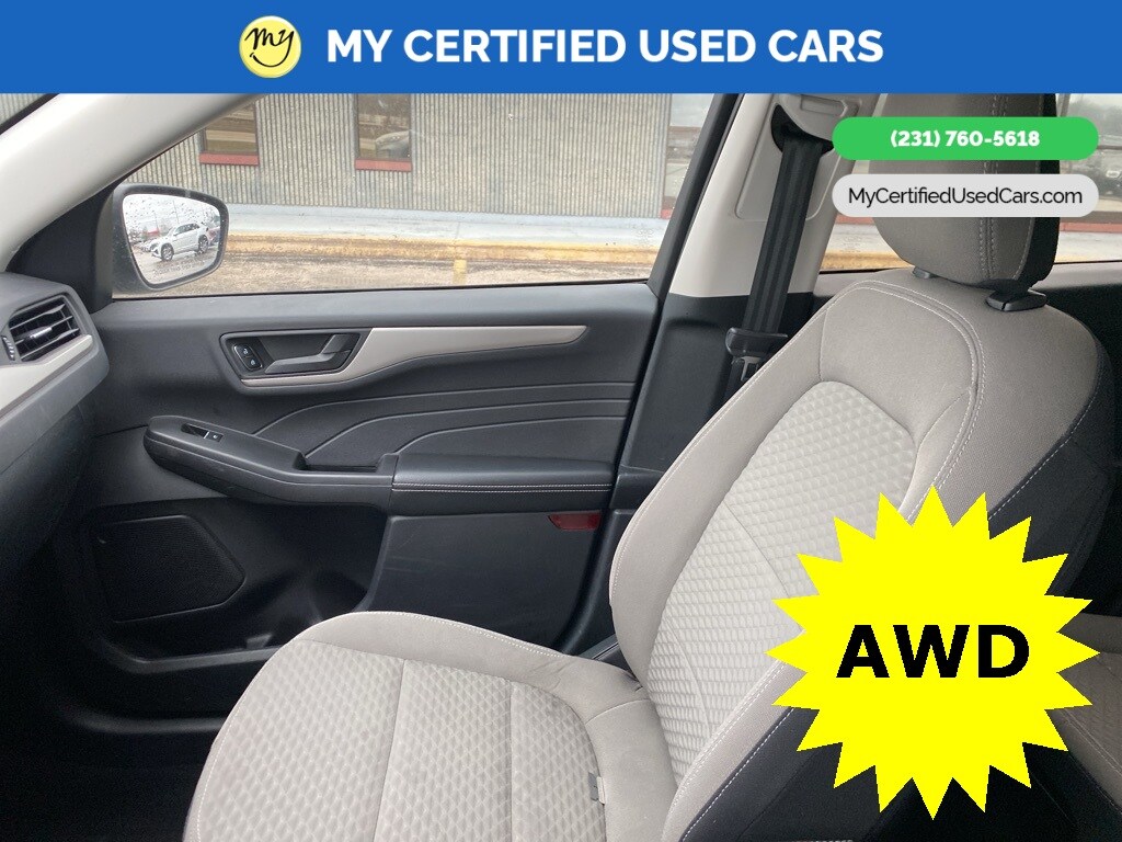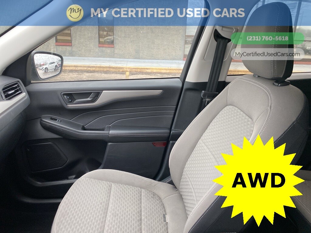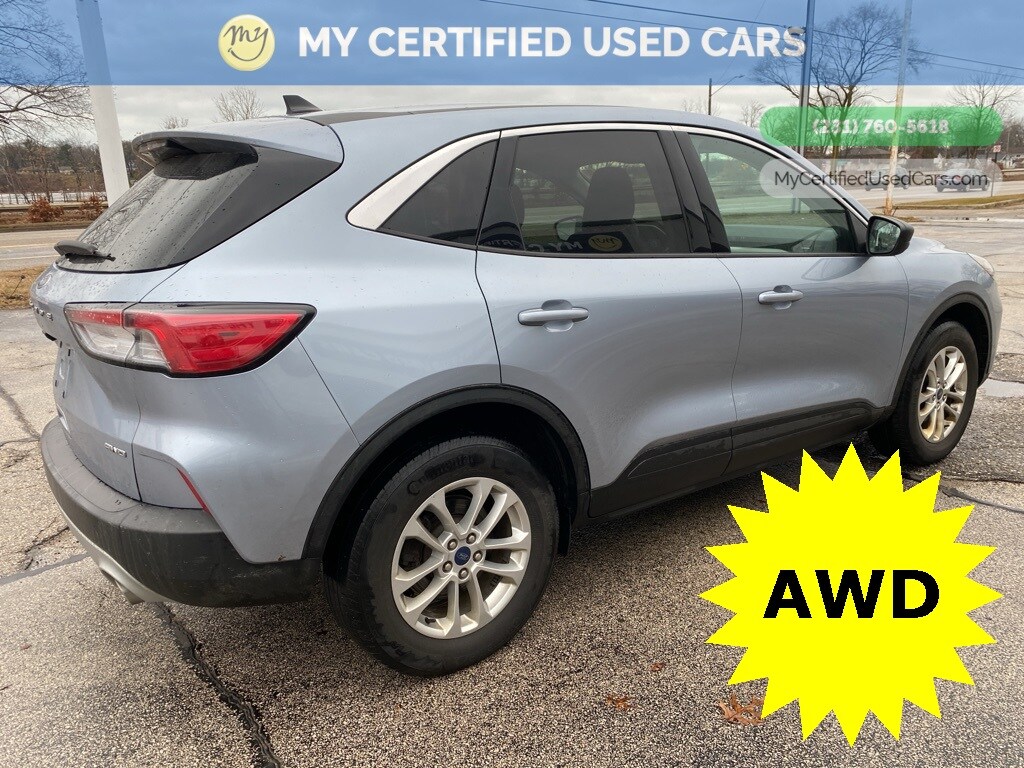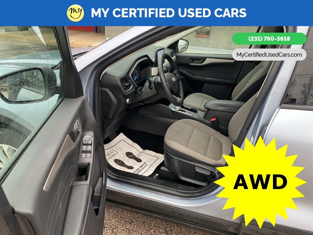 *SUPER BUY* ***2022 FORD ESCAPE SE AWD*** *VERY CLEAN* *REMOTE START* *HEATED SEATS*, *HEATED STEERING WHEEL* ***ADVANCETRAC WITH RSC***, **FORD CO-PILOT 360**, *BLIND SPOT MONITORING SYSTEM*, *HANDSFREE BLUETOOTH*, *REARVIEW CAMERA*, *ADAPTIVE CRUISE*, *APPLE CARPLAY & ANDROID AUTO* Cold Weather Package, Electronic Automatic Temperature Control (EATC), Equipment Group 200A, Heated & Premium Wrapped Steering Wheel, Heated Front Row Seats, Heated Sideview Mirrors, Remote Start System w/86C. MY Certified Used Cars of Muskegon is your #1 choice in Michigan to get the BEST PRICE on used vehicles and BEST value for your trade. The MY Certified Used Cars team is ready to provide you with a world-class experience, ensuring that you find the perfect vehicle that fits all your needs. Every vehicle has been through a full safety inspection completed by certified technicians and fully detailed. We sell many makes and models, Pre-Owned Vehicles with years from 2025-2024-2023-2022-2021-2020-2019-2018-2017-2016-2015-2014-2013-2012-2011-2010-2009-2008-2007 and all makes Audi, BMW, Chevrolet, Toyota, Volkswagen, Kia, Hyundai, Mercedes, Dodge, Chrysler, Jeep, Ram, Lincoln, Honda, Subaru, and many models like Bronco, Bronco Sport, Edge, Escapes, Expedition, Explorer, Fusions, Focus, Flex, F-150 Series, F-250, F-350, Super Duty Diesel Trucks, Maverick, Mustang MACH-E, Mustang, Ranger, Transit, Wrangler, Grand Cherokee, Grand Cherokee L, Wagoneer, Gladiator, Grand Caravan, RAM, RAM HEMI, and more. Take advantage of our VIP experience by calling 231-760-5618 to schedule a test drive. Read our customer reviews at www.mycertifiedusedcars.com/testimonials or view our entire selection of preowned vehicles at www.mycertifiedusedcars.com, or stop by today, located at 3692 Airline Rd. Muskegon, MI 49444. New Price! CARFAX One-Owner. Iced Blue Silver Metallic 2022 Ford Escape SE AWD 8-Speed Automatic 1.5L EcoBoost