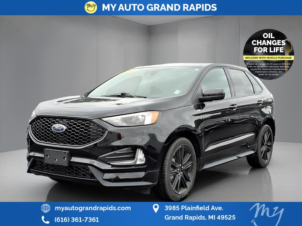LOADED with OPTIONS and LOWEST PRICED, *OIL CHANGES for LIFE*, *APPLE CARPLAY & ANDROID AUTO*, *AWD*, *BLIND SPOT ALERT*, *HANDSFREE BLUETOOTH*, *HEATED SEATS*, *LANE KEEPING ASSIST*, *LEATHER HEATED POWER SEATS*, *POWER SEATS*, *REARVIEW CAMERA*, *REMOTE START*,This Edge ST Line, AWD in Agate Black Metallic comes with ABS brakes, Adaptive Cruise Control w/Stop & Go, Alloy wheels, Compass, Connected Built-In Navigation, Electronic Stability Control, Equipment Group 250A, Evasive Steering Assist, Ford Co-Pilot360 Assist+, Front dual zone A/C, Heated door mirrors, Heated front seats, Illuminated entry, Lane Centering, Low tire pressure warning, Power driver seat, Power Liftgate, Remote keyless entry, SYNC 4A w/Enhanced Voice Recognition, Traction control, Wheels: 20" Premium Gloss Black-Painted Aluminum. My Auto Grand Rapids is your #1 choice in Michigan to get the BEST PRICE on used vehicles and BEST value for your trade. The My Auto Grand Rapids team is ready to provide you with a world-class experience, ensuring that you find the perfect vehicle that fits all your needs. Every vehicle has been through a full safety inspection, completed by certified technicians and fully detailed. We sell many makes and models with years from 2025, 2024, 2023, 2022, 2021, 2020, 2019, 2018, 2017, 2016, 2015, 2014, 2013, 2012, 2011, 2010, 2009 and used makes Audi, BMW, Chevrolet, Toyota, Volkswagen, Kia, Hyundai, Mercedes, Dodge, Chrysler, Jeep, Ram, Lincoln, Ford, Nissan, Honda, Mitsubishi, Subaru, and many models like Altima, Murano, Pathfinder, Kicks, Taos, Beetle, Jetta, Outlander, Eclipse Sport, Frontier, Rogue, Atlas, Versa, and more. Take advantage of our VIP experience by calling 616-361-7361 to schedule a test drive. Read our customer reviews and view our entire selection of preowned vehicles at www.myautograndrapids.com, or stop by today, located at 3985 Plainfield Ave NE, Grand Rapids, MI 49525.