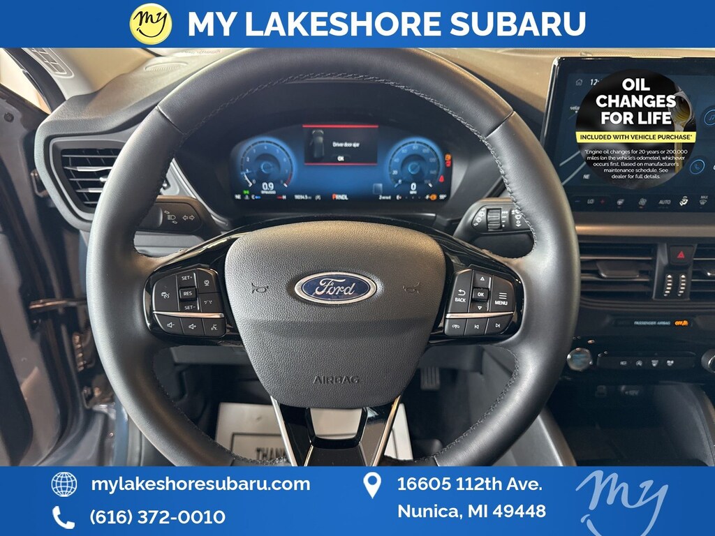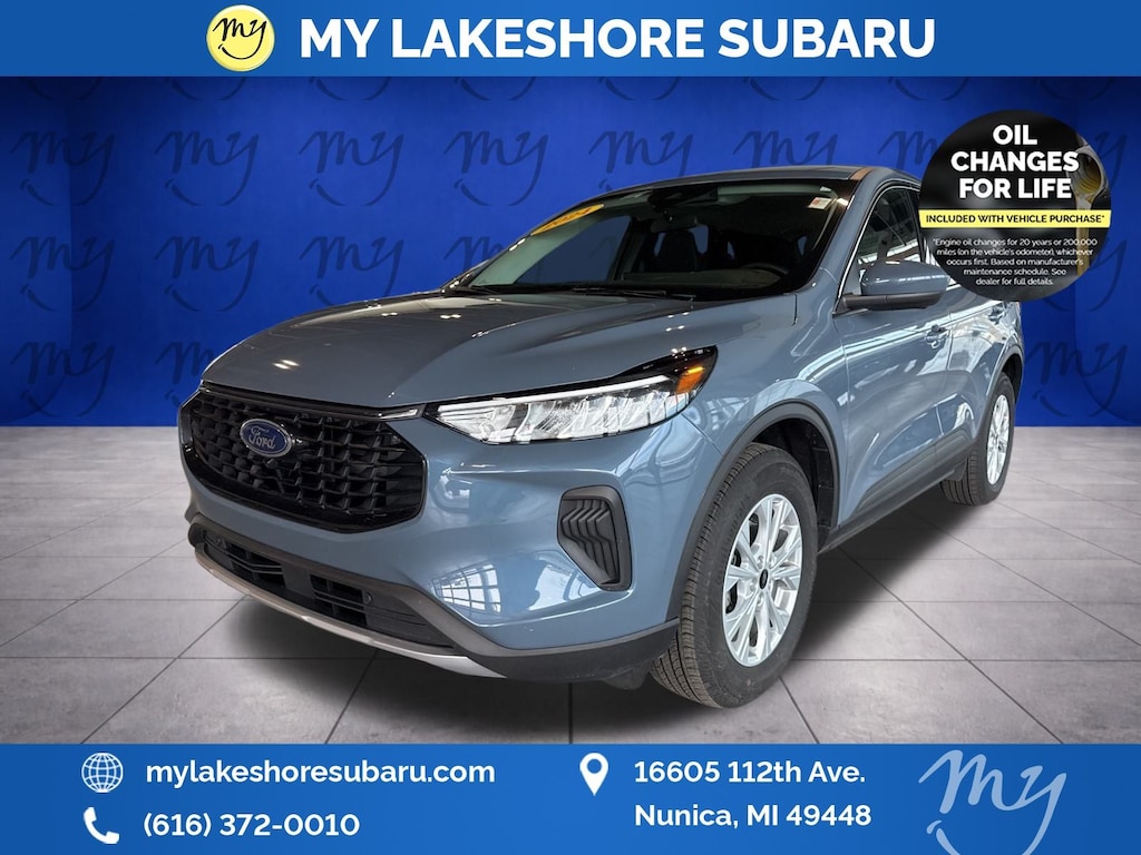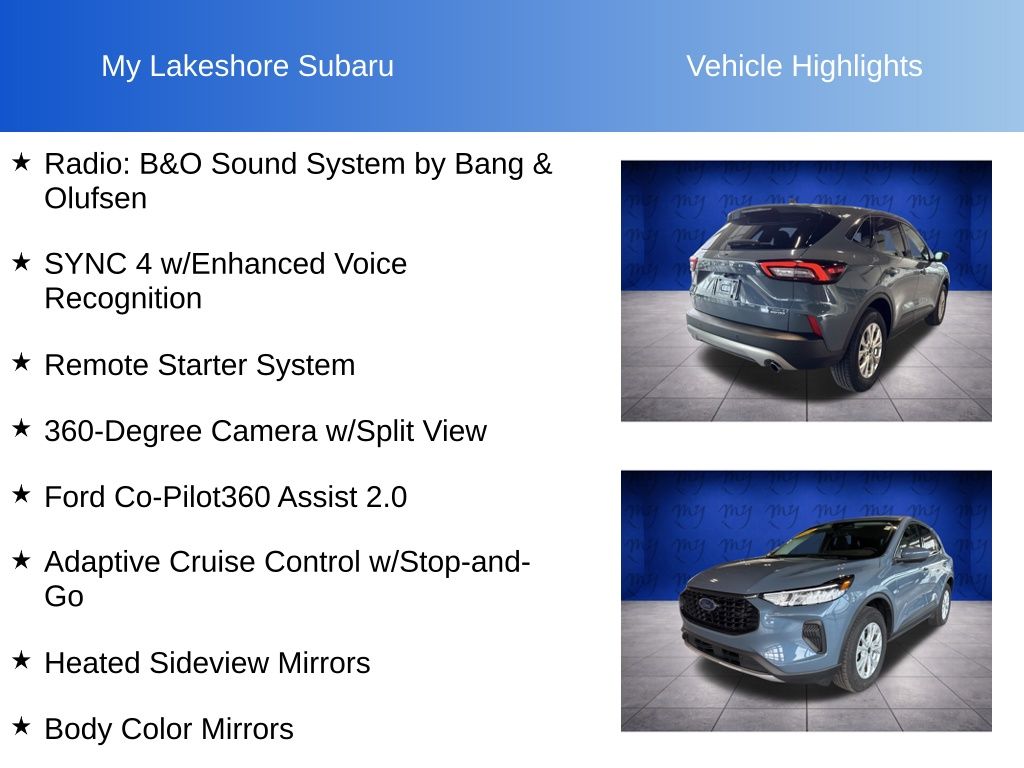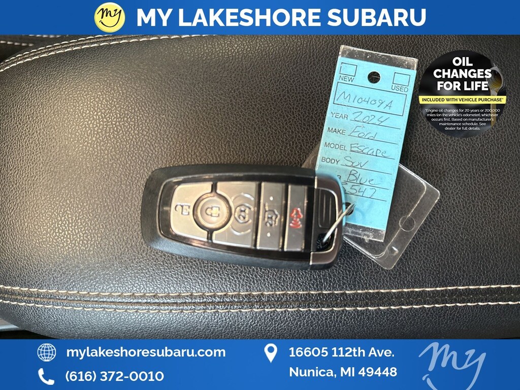 Escape Active, AWD, Vapor Blue Metallic, *ALL WHEEL DRIVE*, *APPLE CARPLAY & ANDROID AUTO*, *BACKUP CAMERA*, *BACKUP SENSORS*, *BLIND SPOT MONITORING*, *HEATED SEATS*, *HEATED STEERING WHEEL*, *LANE DEPARTURE WARNING*, *LOCAL TRADE*, *OIL CHANGES for LIFE*, *PREMIUM SOUND*, 10-Way Power Driver's Seat, 12.3" Productivity Screen in Instrument Cluster, 360-Degree Camera w/Split View, 6-Way Power Passenger Seat, Adaptive Cruise Control w/Stop-and-Go, Body Color Mirrors, Cold Weather Package, Connected Navigation, Equipment Group 200A, Ford Co-Pilot360 Assist 2.0, HD Radio, Heated Front Row Seats, Heated Sideview Mirrors, Heated Steering Wheel, Intersection Assist, Memory Package, Radio: B&O Sound System by Bang & Olufsen, Rear Parking Sensor, Remote Starter System, Reverse Brake Assist, Speed Sign Recognition, SYNC 4 w/Enhanced Voice Recognition, Tech Pack #2, Wireless Charging Pad. Vapor Blue Metallic 2024 Ford Escape Active AWD 8-Speed Automatic 1.5L EcoBoost