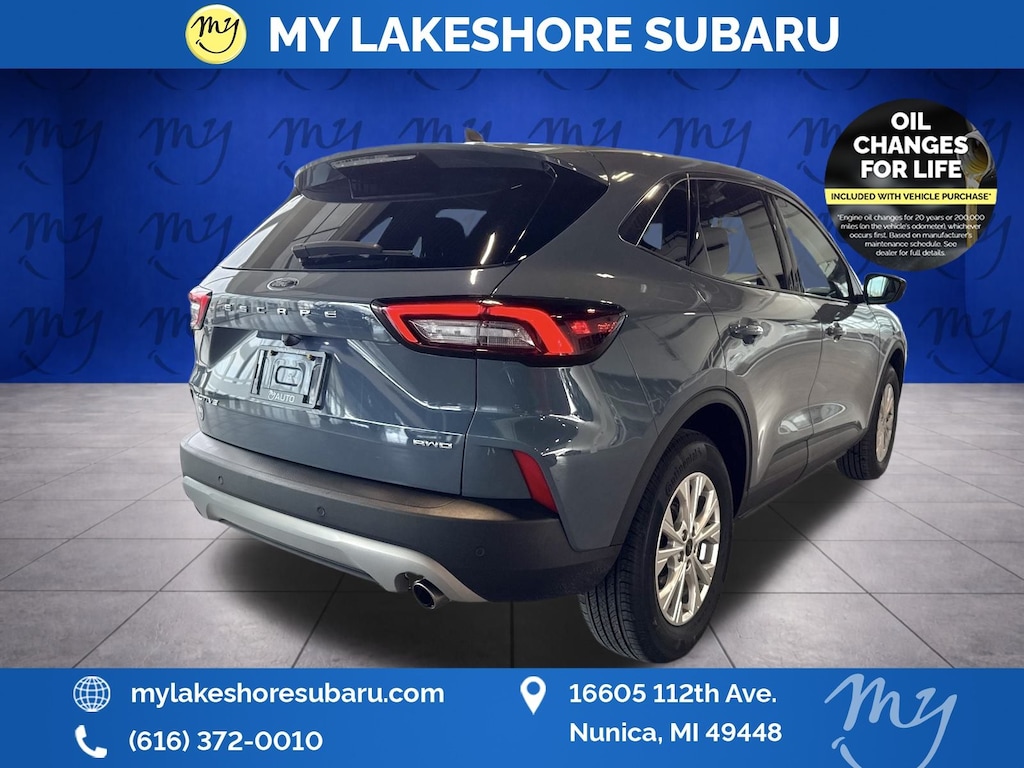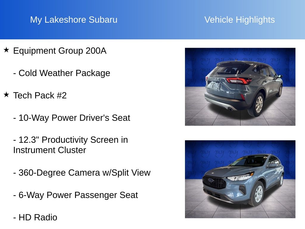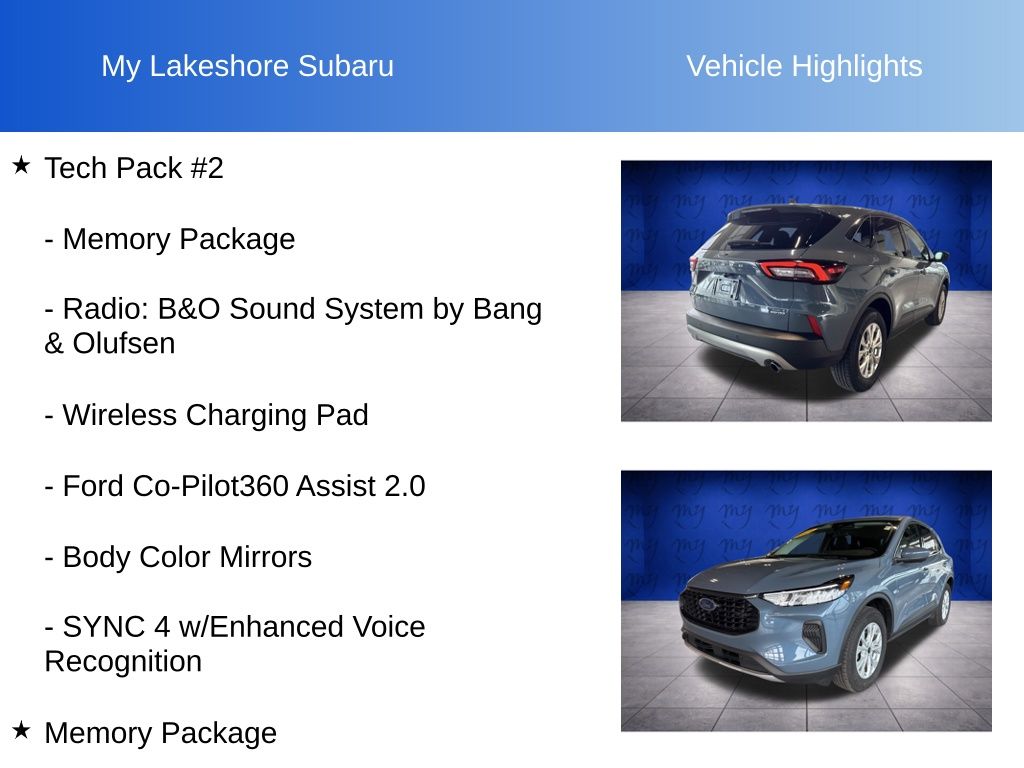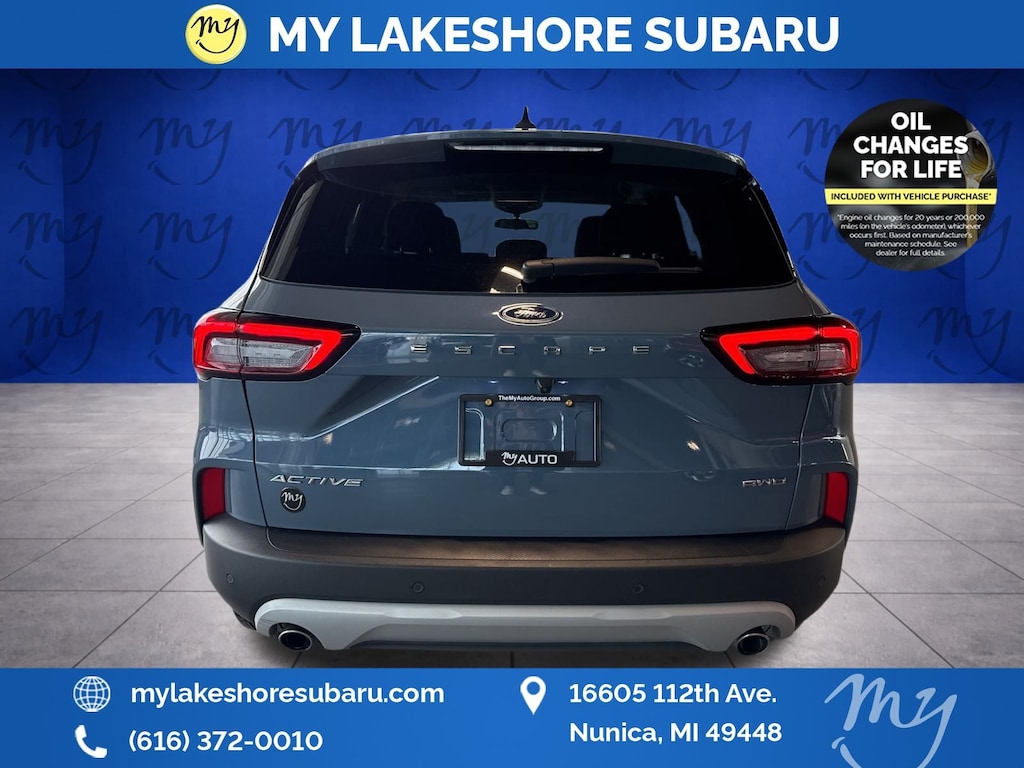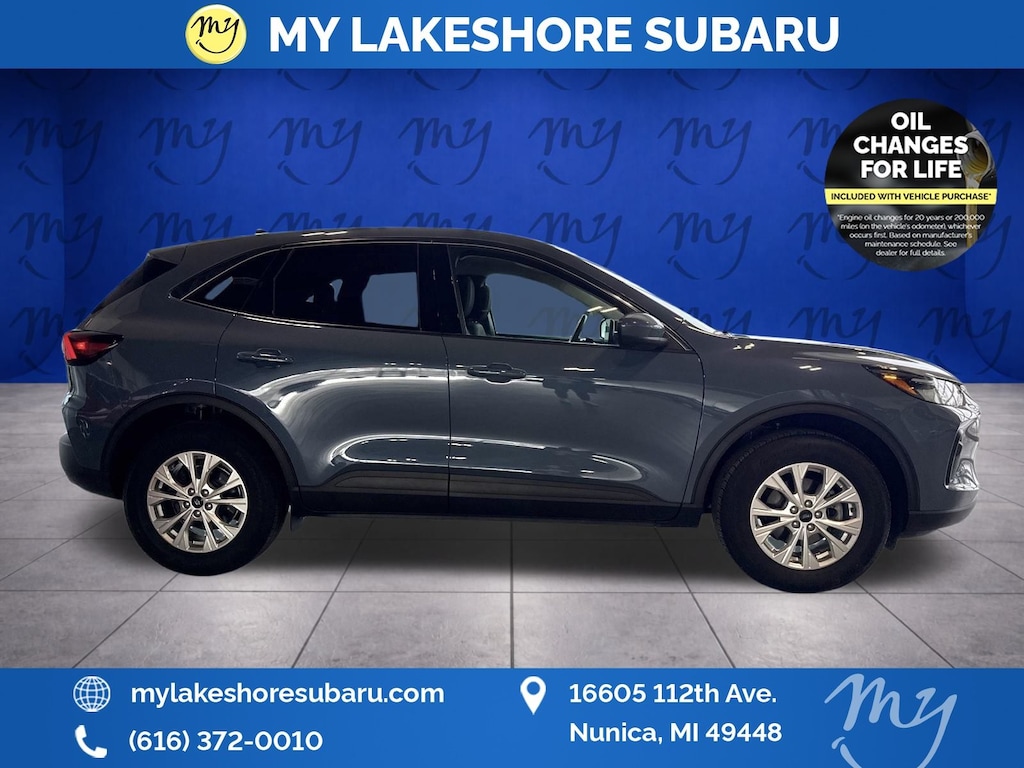 Escape Active, AWD, Vapor Blue Metallic, *ALL WHEEL DRIVE*, *APPLE CARPLAY & ANDROID AUTO*, *BACKUP CAMERA*, *BACKUP SENSORS*, *BLIND SPOT MONITORING*, *HEATED SEATS*, *HEATED STEERING WHEEL*, *LANE DEPARTURE WARNING*, *LOCAL TRADE*, *OIL CHANGES for LIFE*, *PREMIUM SOUND*, 10-Way Power Driver's Seat, 12.3" Productivity Screen in Instrument Cluster, 360-Degree Camera w/Split View, 6-Way Power Passenger Seat, Adaptive Cruise Control w/Stop-and-Go, Body Color Mirrors, Cold Weather Package, Connected Navigation, Equipment Group 200A, Ford Co-Pilot360 Assist 2.0, HD Radio, Heated Front Row Seats, Heated Sideview Mirrors, Heated Steering Wheel, Intersection Assist, Memory Package, Radio: B&O Sound System by Bang & Olufsen, Rear Parking Sensor, Remote Starter System, Reverse Brake Assist, Speed Sign Recognition, SYNC 4 w/Enhanced Voice Recognition, Tech Pack #2, Wireless Charging Pad. Vapor Blue Metallic 2024 Ford Escape Active AWD 8-Speed Automatic 1.5L EcoBoost