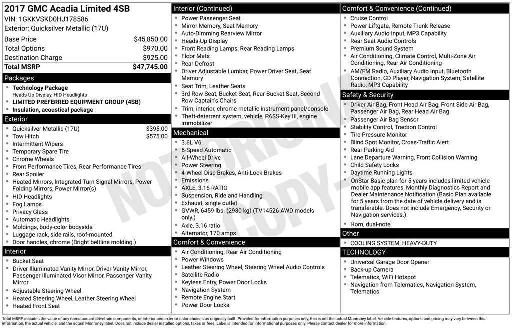 Acadia Limited Limited, Quicksilver Metallic, *ALL WHEEL DRIVE*, *LOCAL TRADE*. Quicksilver Metallic 2017 GMC Acadia Limited Limited AWD 6-Speed Automatic 3.6L V6 SIDI