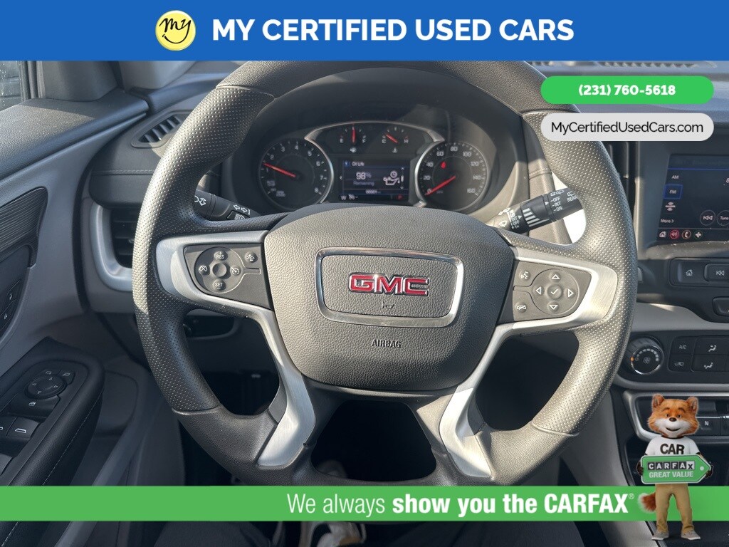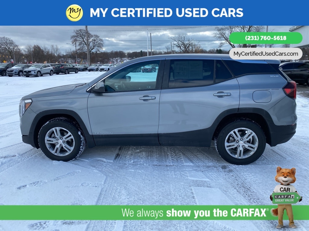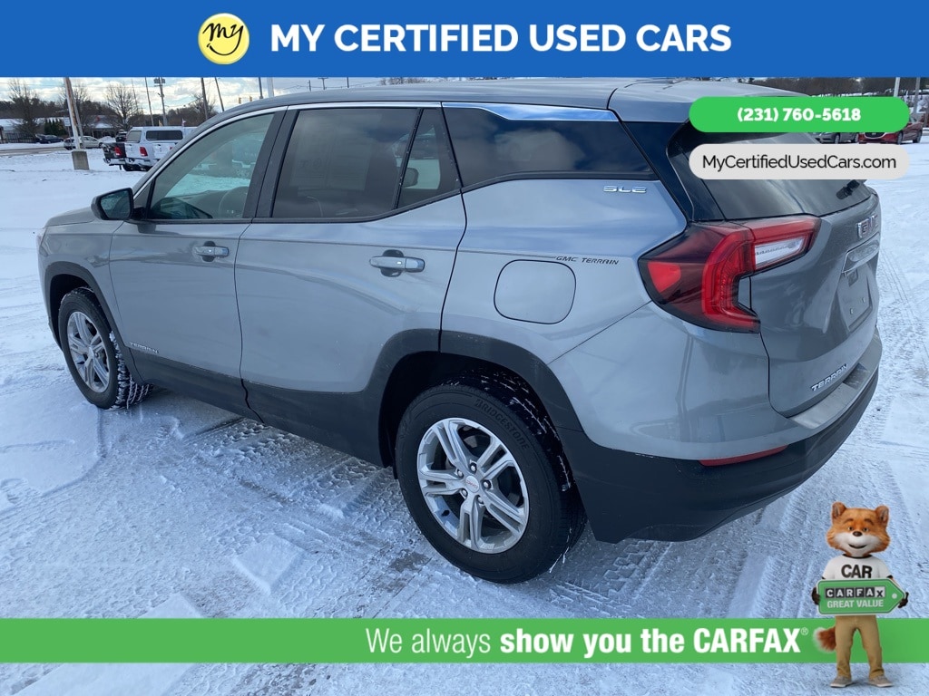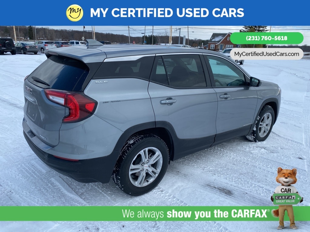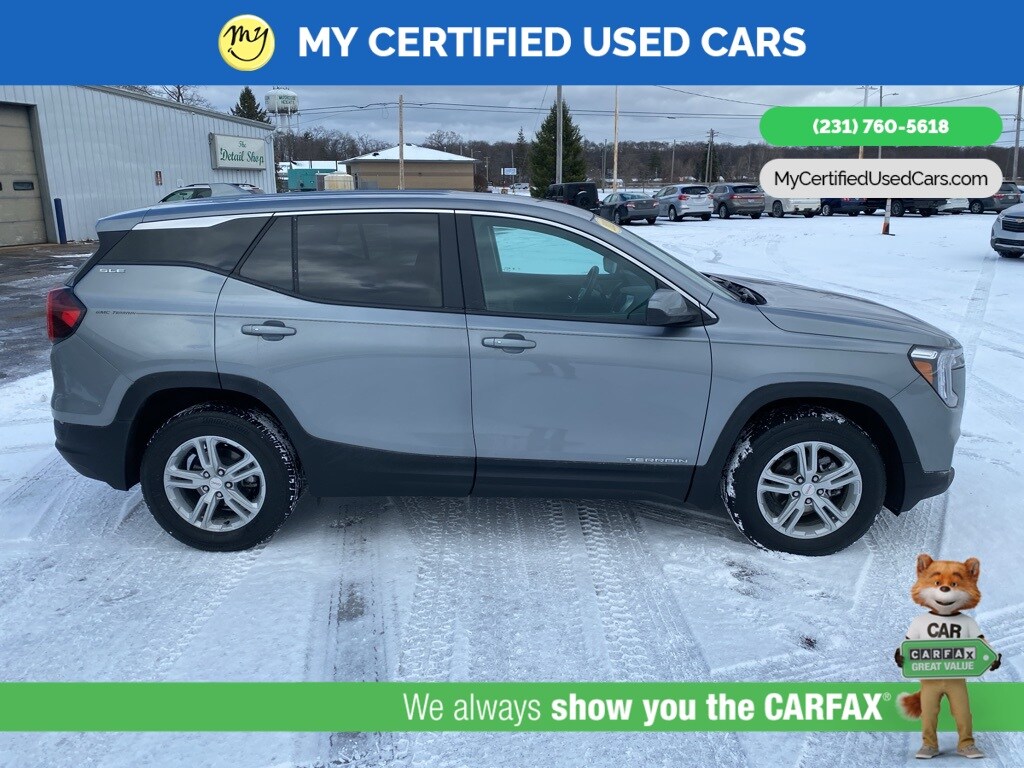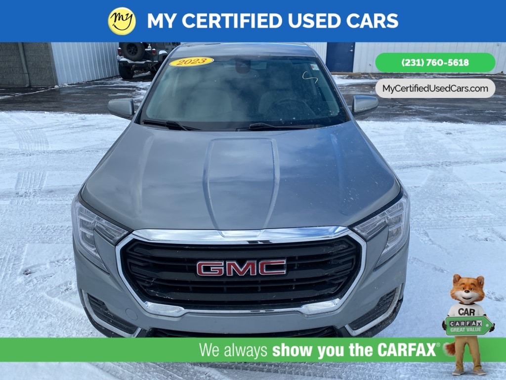*VERY CLEAN* ***2023 GMC TERRAIN AWD***, *SUPER BUY* *APPLE CARPLAY & ANDROID AUTO*, *BACKUP CAMERA*, *BLUETOOTH*, Remote keyless entry, Wireless Apple CarPlay/Wireless Android Auto, Auto High-beam Headlights, Bluetooth® For Phone, Floor Liner Package (LPO), Front & Rear All-Weather Floor Liners (LPO), Fully automatic headlights, Heated door mirrors, Integrated Cargo Liner (LPO), Preferred Equipment Group 3SA, Remote keyless entry, Wireless Apple CarPlay/Wireless Android Auto. MY Certified Used Cars of Muskegon is your #1 choice in Michigan to get the BEST PRICE on used vehicles and BEST value for your trade. The MY Certified Used Cars team is ready to provide you with a world-class experience, ensuring that you find the perfect vehicle that fits all your needs. Every vehicle has been through a full safety inspection completed by certified technicians and fully detailed. We sell many makes and models, Pre-Owned Vehicles with years from 2025-2024-2023-2022-2021-2020-2019-2018-2017-2016-2015-2014-2013-2012-2011-2010-2009-2008-2007 and all makes Audi, BMW, Chevrolet, Toyota, Volkswagen, Kia, Hyundai, Mercedes, Dodge, Chrysler, Jeep, Ram, Lincoln, Honda, Subaru, and many models like Bronco, Bronco Sport, Edge, Escapes, Expedition, Explorer, Fusions, Focus, Flex, F-150 Series, F-250, F-350, Super Duty Diesel Trucks, Maverick, Mustang MACH-E, Mustang, Ranger, Transit, Wrangler, Grand Cherokee, Grand Cherokee L, Wagoneer, Gladiator, Grand Caravan, RAM, RAM HEMI, and more. Take advantage of our VIP experience by calling 231-760-5618 to schedule a test drive. Read our customer reviews at www.mycertifiedusedcars.com/testimonials or view our entire selection of preowned vehicles at www.mycertifiedusedcars.com, or stop by today, located at 3692 Airline Rd. Muskegon, MI 49444. CARFAX One-Owner. Sterling Metallic 2023 GMC Terrain SLE AWD 9-Speed Automatic 1.5L DOHC Clean CARFAX.