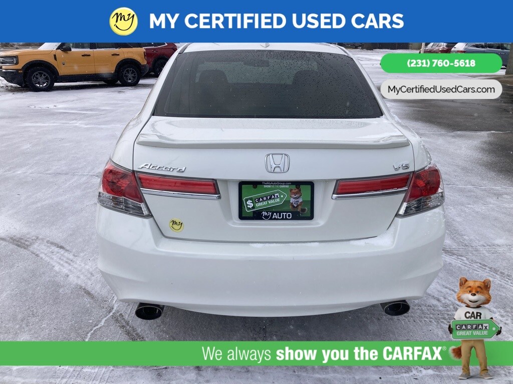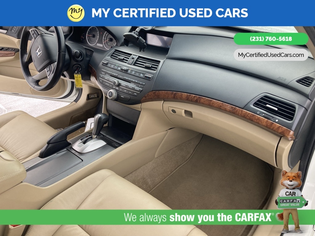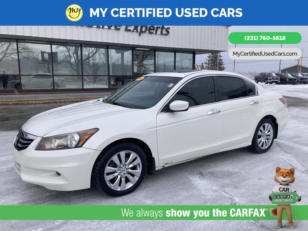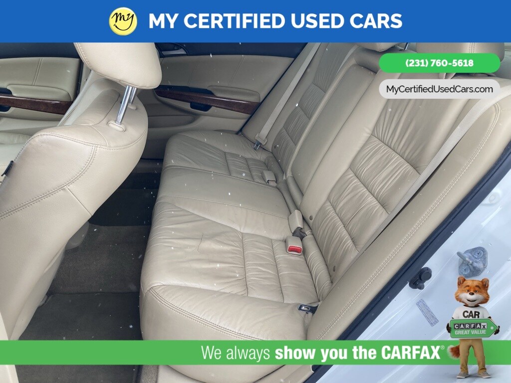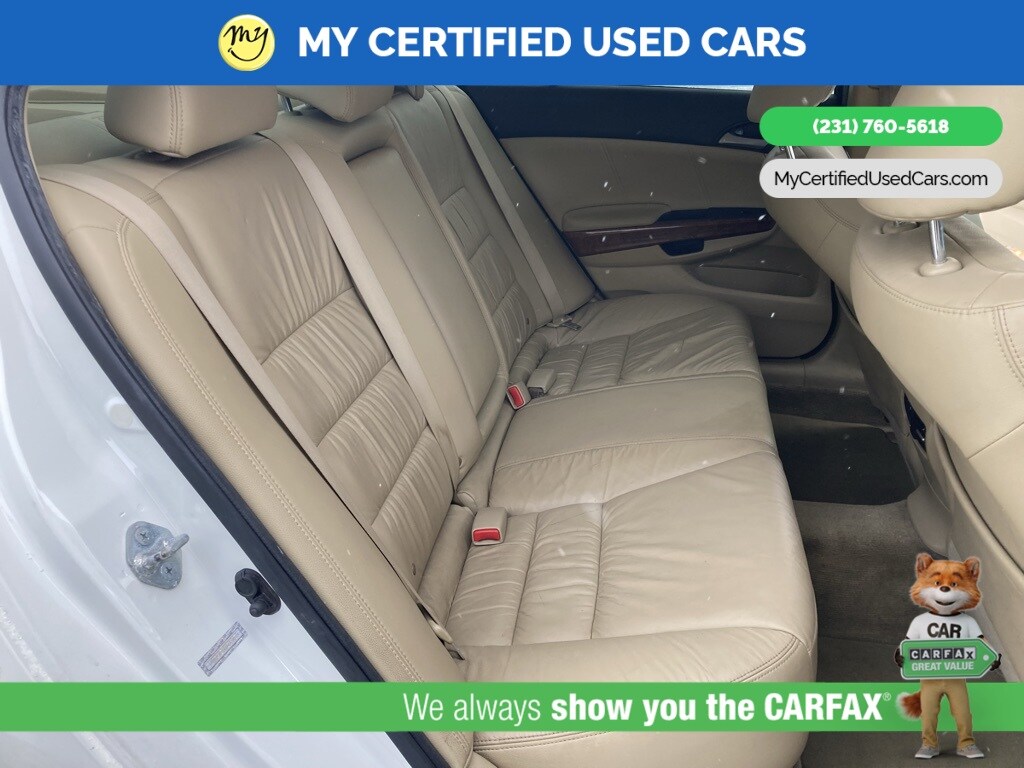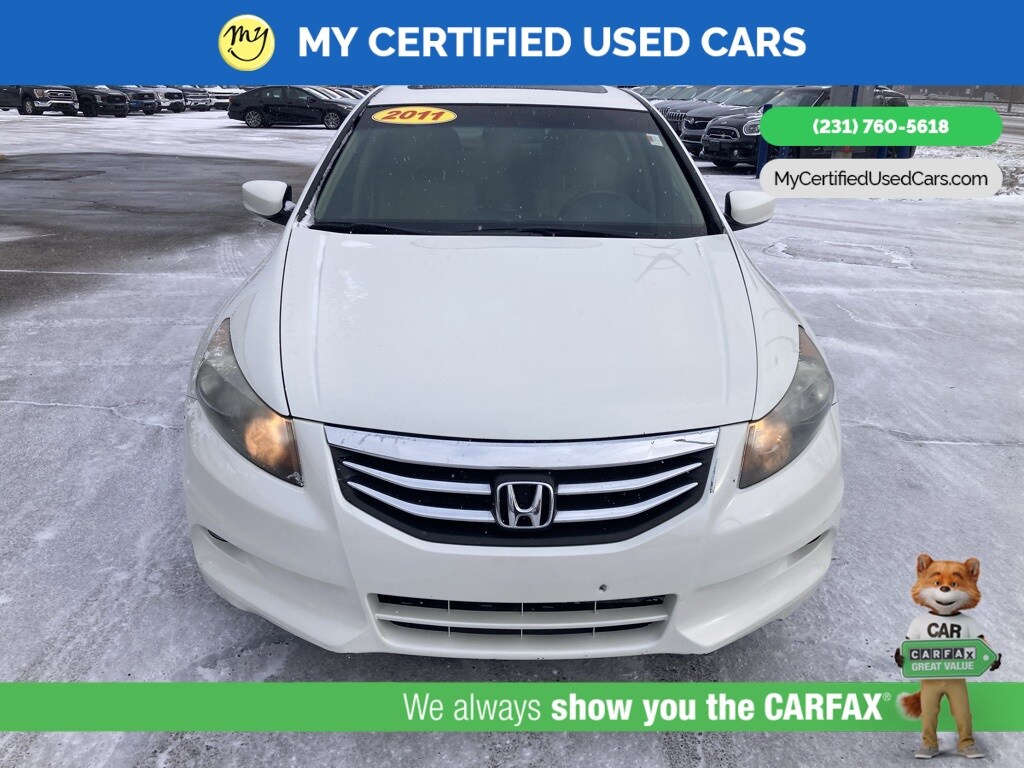 *LOCAL TRADE* ***2011 HONDA ACCORD EX-L***, *SUPER BUY* *BACKUP CAMERA*, *LEATHER HEATED POWER SEATS*, *MEMORY SEAT*, *MOONROOF*, 7 Speakers, Front dual zone A/C, Memory seat, Power moonroof. MY Certified Used Cars of Muskegon is your #1 choice in Michigan to get the BEST PRICE on used vehicles and BEST value for your trade. The MY Certified Used Cars team is ready to provide you with a world-class experience, ensuring that you find the perfect vehicle that fits all your needs. Every vehicle has been through a full safety inspection completed by certified technicians and fully detailed. We sell many makes and models, Pre-Owned Vehicles with years from 2025-2024-2023-2022-2021-2020-2019-2018-2017-2016-2015-2014-2013-2012-2011-2010-2009-2008-2007 and all makes Audi, BMW, Chevrolet, Toyota, Volkswagen, Kia, Hyundai, Mercedes, Dodge, Chrysler, Jeep, Ram, Lincoln, Honda, Subaru, and many models like Bronco, Bronco Sport, Edge, Escapes, Expedition, Explorer, Fusions, Focus, Flex, F-150 Series, F-250, F-350, Super Duty Diesel Trucks, Maverick, Mustang MACH-E, Mustang, Ranger, Transit, Wrangler, Grand Cherokee, Grand Cherokee L, Wagoneer, Gladiator, Grand Caravan, RAM, RAM HEMI, and more. Take advantage of our VIP experience by calling 231-760-5618 to schedule a test drive. Read our customer reviews at www.mycertifiedusedcars.com/testimonials or view our entire selection of preowned vehicles at www.mycertifiedusedcars.com, or stop by today, located at 3692 Airline Rd. Muskegon, MI 49444. White 2011 Honda Accord EX-L 3.5 FWD 5-Speed Automatic with Overdrive 3.5L V6 SOHC i-VTEC 24V Clean CARFAX.