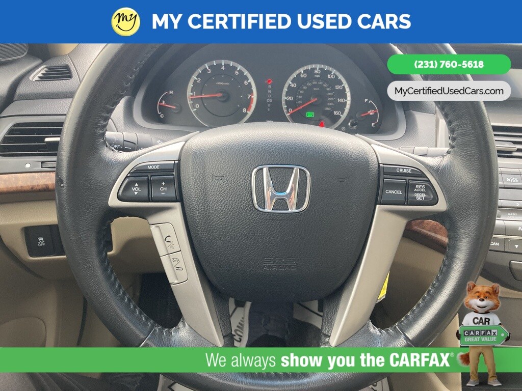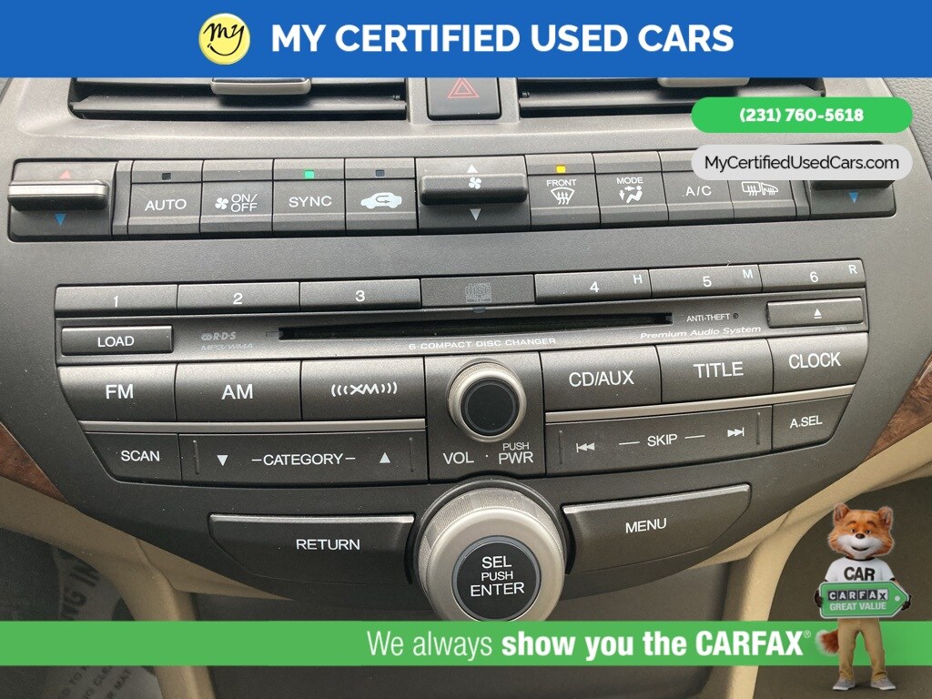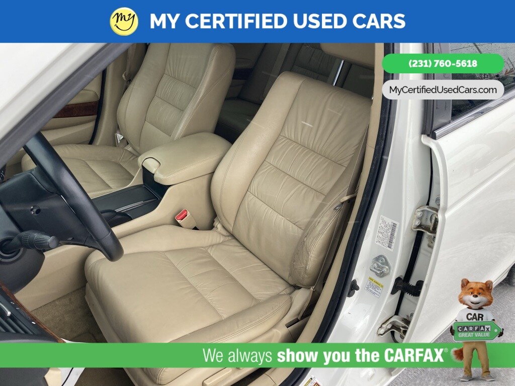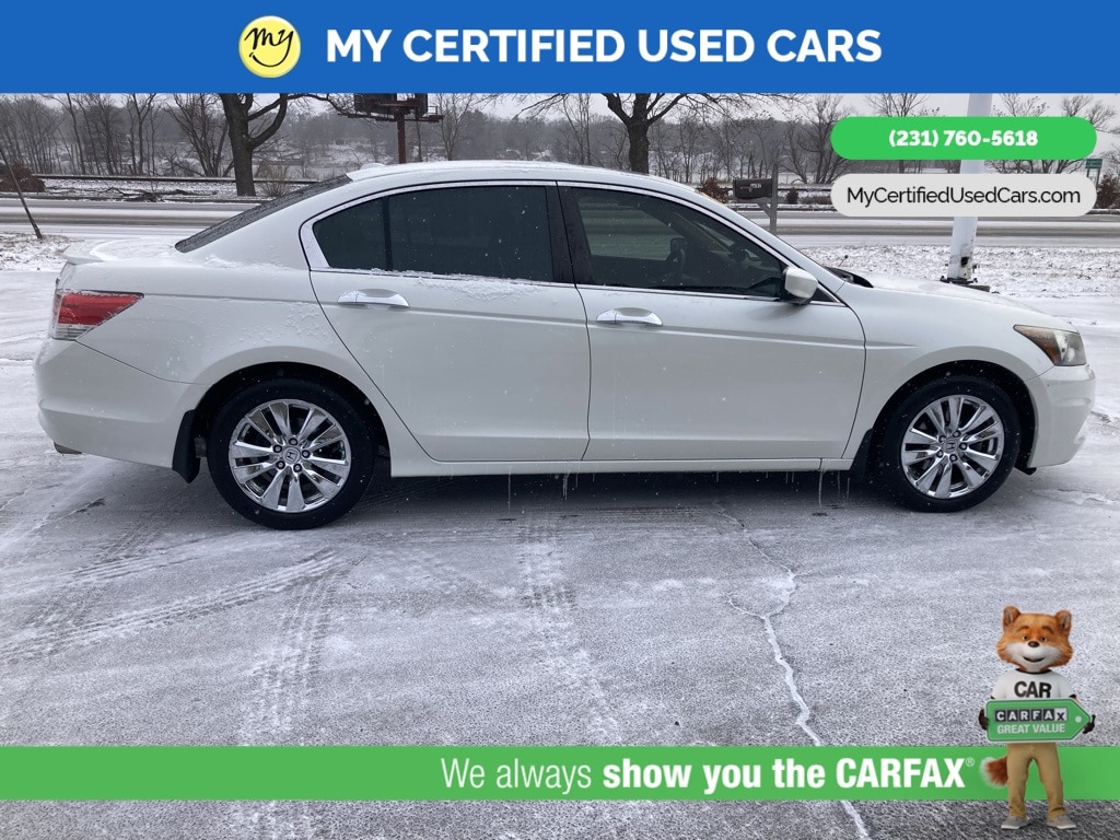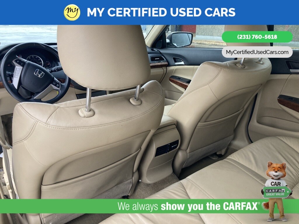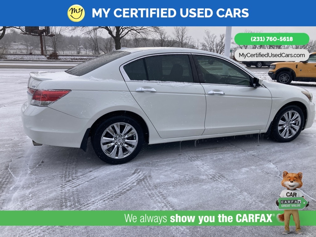 *LOCAL TRADE* ***2011 HONDA ACCORD EX-L***, *SUPER BUY* *BACKUP CAMERA*, *LEATHER HEATED POWER SEATS*, *MEMORY SEAT*, *MOONROOF*, 7 Speakers, Front dual zone A/C, Memory seat, Power moonroof. MY Certified Used Cars of Muskegon is your #1 choice in Michigan to get the BEST PRICE on used vehicles and BEST value for your trade. The MY Certified Used Cars team is ready to provide you with a world-class experience, ensuring that you find the perfect vehicle that fits all your needs. Every vehicle has been through a full safety inspection completed by certified technicians and fully detailed. We sell many makes and models, Pre-Owned Vehicles with years from 2025-2024-2023-2022-2021-2020-2019-2018-2017-2016-2015-2014-2013-2012-2011-2010-2009-2008-2007 and all makes Audi, BMW, Chevrolet, Toyota, Volkswagen, Kia, Hyundai, Mercedes, Dodge, Chrysler, Jeep, Ram, Lincoln, Honda, Subaru, and many models like Bronco, Bronco Sport, Edge, Escapes, Expedition, Explorer, Fusions, Focus, Flex, F-150 Series, F-250, F-350, Super Duty Diesel Trucks, Maverick, Mustang MACH-E, Mustang, Ranger, Transit, Wrangler, Grand Cherokee, Grand Cherokee L, Wagoneer, Gladiator, Grand Caravan, RAM, RAM HEMI, and more. Take advantage of our VIP experience by calling 231-760-5618 to schedule a test drive. Read our customer reviews at www.mycertifiedusedcars.com/testimonials or view our entire selection of preowned vehicles at www.mycertifiedusedcars.com, or stop by today, located at 3692 Airline Rd. Muskegon, MI 49444. White 2011 Honda Accord EX-L 3.5 FWD 5-Speed Automatic with Overdrive 3.5L V6 SOHC i-VTEC 24V Clean CARFAX.