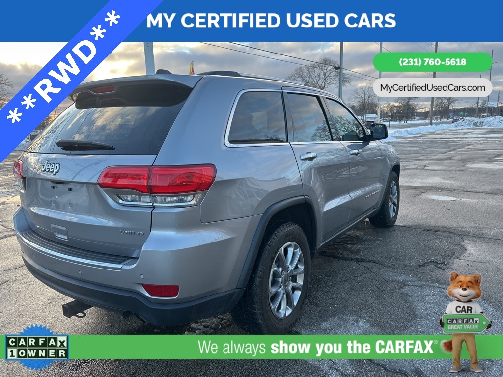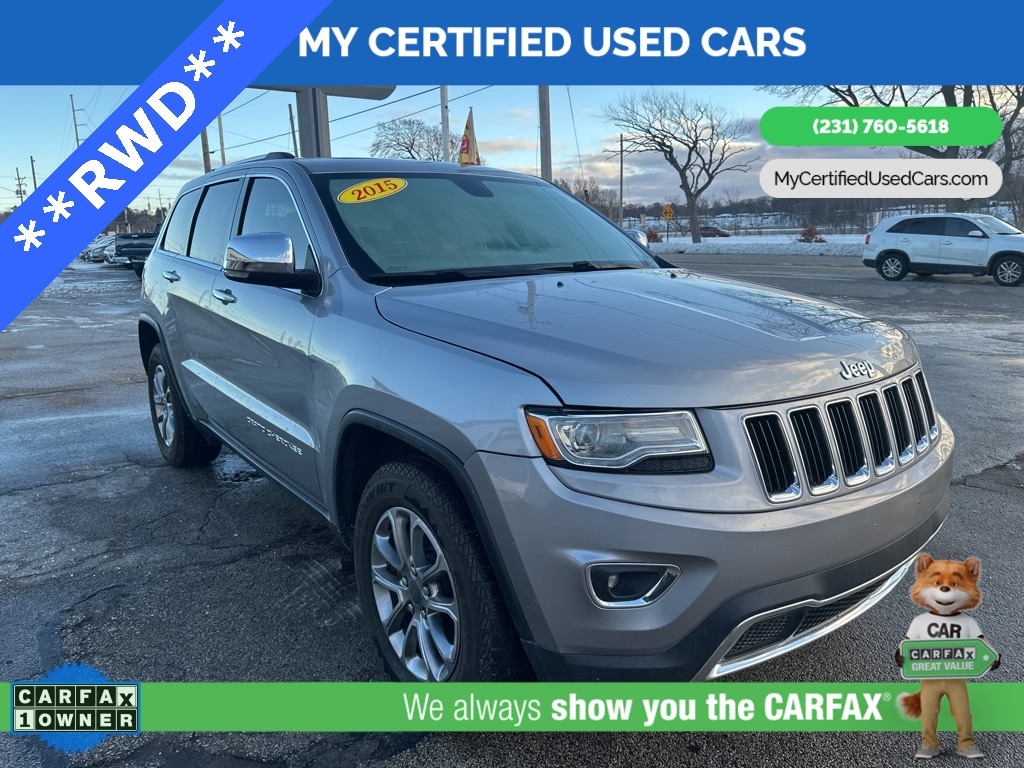 *VERY CLEAN** **ONE OWNER** **2015 JEEP GRAND CHEROKEE LIMITED RWD***, *LOCAL TRADE* *SUPER BUY* *FULLY SERVICED*, *REMOTE START* , *LEATHER HEATED/COOLED POWER SEATS** *HEATED STEERING WHEEL* *MEMORY SEAT* , *MEMORY SEAT*, *NAVIGATION SYSTEM*, *PANORAMIC MOONROOF*, *PREMIUM SOUND*, *BACKUP SENSORS* *REARVIEW CAMERA* *HANDSFREE BLUETOOTH *APPLE CARPLAY & ANDROID AUTO* , 506 Watt Amplifier, 6 Month Trial (Registration Required), 8.4" Touchscreen Display, 9 Amplified Speakers w/Subwoofer, Auto High Beam Headlamp Control, Automatic Headlamp Leveling System, Bi-Xenon High-Intensity Discharge Headlamps, Dual-Pane Panoramic Sunroof, Exterior Parking Camera Rear, For Details Visit DriveUconnect.com, Garage door transmitter, GPS Antenna Input, Heated front seats, Heated rear seats, Integrated Voice Command w/Bluetooth, Leather Trimmed Seats w/Perforated Inserts, LED Daytime Running Headlamps, Luxury Group II, Memory seat, Nav-Capable! See Dealer for Details, Navigation System, Power Liftgate, Power Tilt/Telescope Steering Column, Quick Order Package 23H (DISC), Radio: Uconnect 8.4, Rain Sensitive Windshield Wipers, Rear Parking Sensors, Rear-View Auto-Dimming Mirror w/Microphone, Roadside Assistance & 9-1-1 Call, SIRIUSXM Satellite Radio, Uconnect Access, Ventilated Front Seats. MY Certified Used Cars of Muskegon is your #1 choice in Michigan to get the BEST PRICE on used vehicles and BEST value for your trade. The MY Certified Used Cars team is ready to provide you with a world-class experience, ensuring that you find the perfect vehicle that fits all your needs. Every vehicle has been through a full safety inspection completed by certified technicians and fully detailed. We sell many makes and models, Pre-Owned Vehicles with years from 2025-2024-2023-2022-2021-2020-2019-2018-2017-2016-2015-2014-2013-2012-2011-2010-2009-2008-2007 and all makes Audi, BMW, Chevrolet, Toyota, Volkswagen, Kia, Hyundai, Mercedes, Dodge, Chrysler, Jeep, Ram, Lincoln, Honda, Subaru, and many models like Bronco, Bronco Sport, Edge, Escapes, Expedition, Explorer, Fusions, Focus, Flex, F-150 Series, F-250, F-350, Super Duty Diesel Trucks, Maverick, Mustang MACH-E, Mustang, Ranger, Transit, Wrangler, Grand Cherokee, Grand Cherokee L, Wagoneer, Gladiator, Grand Caravan, RAM, RAM HEMI, and more. Take advantage of our VIP experience by calling 231-760-5618 to schedule a test drive. Read our customer reviews at www.mycertifiedusedcars.com/testimonials or view our entire selection of preowned vehicles at www.mycertifiedusedcars.com, or stop by today, located at 3692 Airline Rd. Muskegon, MI 49444. Billet Silver Metallic Clearcoat 2015 Jeep Grand Cherokee Limited RWD 8-Speed Automatic 3.6L V6 24V VVT Clean CARFAX.