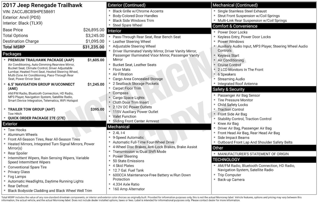 We have a 2015 Renegade w/ the 1.4L turbo engine & 6-speed manual in the Latitude package. Silver w/ tan interior. It has heated seats & steering wheel, which is great in NY winters. We’ve had 4 adults comfortably on multiple road trips, averaging 37-38 mpg. Oil changes & gas can be pricey bc it req’s European grade synthetic oil and high octane. But w/ the mileage it gets and surprising amount of interior room, I love this Jeep. And now it’s approaching the age where I can start adding a small lift and tires - 5.0