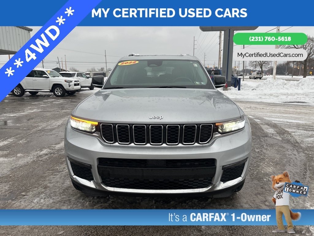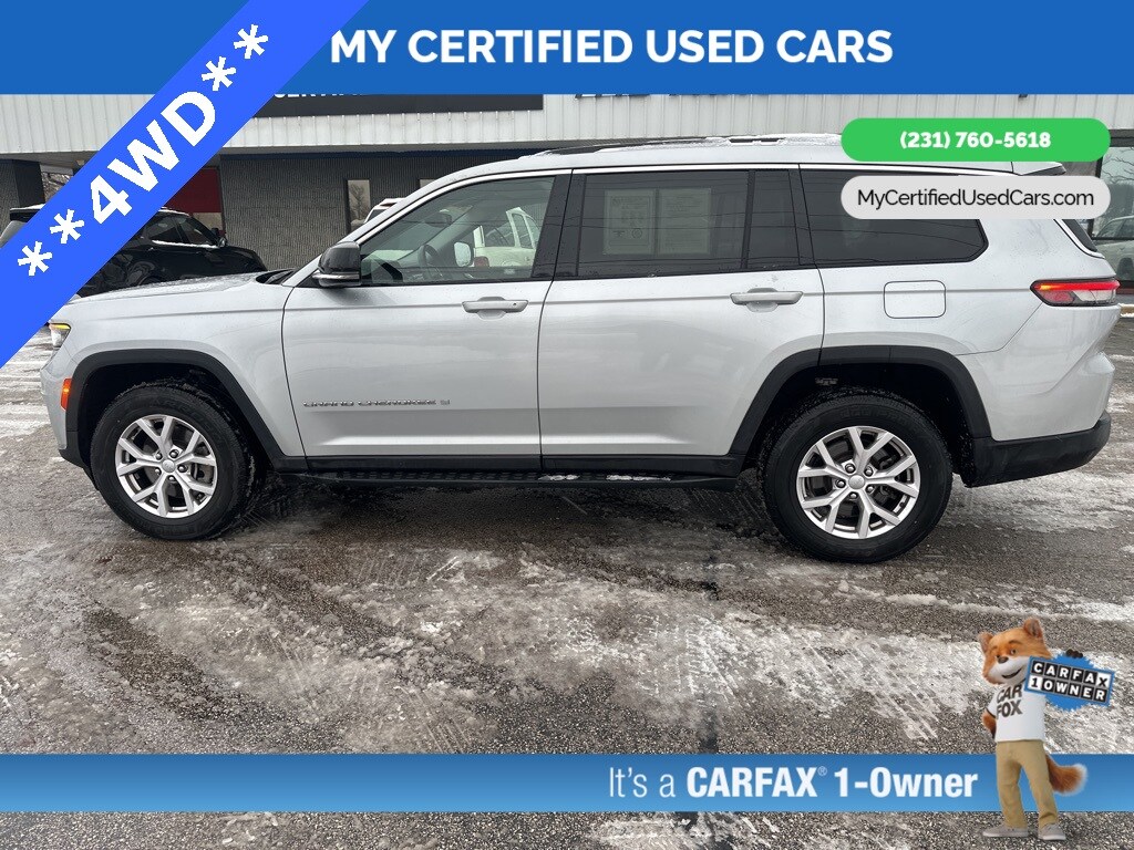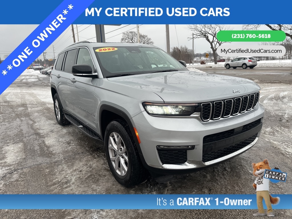 *VERY CLEAN* **ONE OWNER** ***2022 JEEP GRAND CHEROKEE L LIMITED 4WD***, *SUPER BUY* *REMOTE START* *LEATHER HEATED POWER SEATS* *HEATED STEERING WHEEL* **HEATED SECOND ROW**, *PANORAMIC MOONROOF*, *PREMIUM SOUND* *APPLE CARPLAY & ANDROID AUTO*, *REARVIEW CAMERA*, 10.1" Touchscreen Display, 4G LTE Wi-Fi Hot Spot, 506 Watt Amplifier, 9 Amplified Speakers w/Subwoofer, Active Noise Control System, All Radio Equipped Vehicles, Apple CarPlay, Auto High-beam Headlights, Connected Travel & Traffic Services, Connectivity - US/Canada, Disassociated Touchscreen Display, Dual-Pane Panoramic Sunroof, For Details, Visit DriveUconnect.com, For More Info, Call 800-643-2112, Global Telematics Box Module (TBM), Google Android Auto, GPS Antenna Input, GPS Navigation, HD Radio, Heated rear seats, Integrated Center Stack Radio, Integrated Voice Command w/Bluetooth, Interior Rear Facing Camera, Navigation System, ParkView Rear Back-Up Camera, Power Liftgate, Quick Order Package 22E, Radio: Uconnect 5 Nav w/10.1" Display, SiriusXM Radio Service, SiriusXM Satellite Radio, SiriusXM w/360L, USB Host Flip. MY Certified Used Cars of Muskegon is your #1 choice in Michigan to get the BEST PRICE on used vehicles and BEST value for your trade. The MY Certified Used Cars team is ready to provide you with a world-class experience, ensuring that you find the perfect vehicle that fits all your needs. Every vehicle has been through a full safety inspection completed by certified technicians and fully detailed. We sell many makes and models, Pre-Owned Vehicles with years from 2025-2024-2023-2022-2021-2020-2019-2018-2017-2016-2015-2014-2013-2012-2011-2010-2009-2008-2007 and all makes Audi, BMW, Chevrolet, Toyota, Volkswagen, Kia, Hyundai, Mercedes, Dodge, Chrysler, Jeep, Ram, Lincoln, Honda, Subaru, and many models like Bronco, Bronco Sport, Edge, Escapes, Expedition, Explorer, Fusions, Focus, Flex, F-150 Series, F-250, F-350, Super Duty Diesel Trucks, Maverick, Mustang MACH-E, Mustang, Ranger, Transit, Wrangler, Grand Cherokee, Grand Cherokee L, Wagoneer, Gladiator, Grand Caravan, RAM, RAM HEMI, and more. Take advantage of our VIP experience by calling 231-760-5618 to schedule a test drive. Read our customer reviews at www.mycertifiedusedcars.com/testimonials or view our entire selection of preowned vehicles at www.mycertifiedusedcars.com, or stop by today, located at 3692 Airline Rd. Muskegon, MI 49444. CARFAX One-Owner. Silver Zynith 2022 Jeep Grand Cherokee L Limited 4WD 8-Speed Automatic 3.6L V6 24V VVT Clean CARFAX.