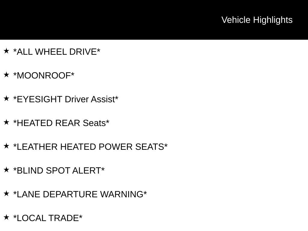 My Lakeshore Subaru is proud to service customer's saving you time & money on any Pre-owned vehicle! See dealer for complete details, dealer is not responsible for pricing errors, all prices, plus tax, title, plate, and doc fees. Serving Nunica and all of our surrounding cities like Norton Shores, Grandville, Greenville, Grand Rapids, Lansing, Kalamazoo, Walker, Comstock Park, Grand Haven, Holland, Wyoming, North Muskegon, Fruitport, Hudsonville, Spring Lake, Wolf Lake, Rockford, Zeeland, Kent City, Sparta, Coopersville, Allendale, Whitehall, and anywhere in the great state of Michigan. Buy from My Lakeshore Subaru in Nunica, MI and you will receive a best-in-class experience. Some of our used vehicles may be subject to unrepaired safety recalls. Check for a vehicle's unrepaired recalls by VIN at http://vinrcl.safercar.gov/vin/.