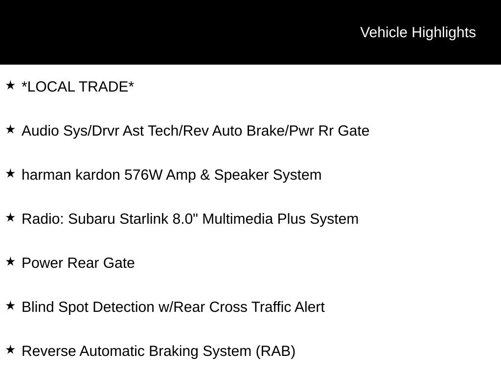 My Lakeshore Subaru is your #1 choice in Michigan to get the BEST PRICE on used vehicles and BEST value for your trade. The My Lakeshore Subaru team is ready to provide you with a world-class experience, ensuring that you find the perfect vehicle that fits all your needs. Every vehicle has been through a full safety inspection completed by certified technicians and fully detailed. We sell many makes and models, Certified Pre-owned Subaruâs and Pre-owned Vehicles with years from 2025-2024-2023-2022-2021-2020-2019-2018-2017-2016-2015-2014-2013-2012-2011-2010-2009-2008-2007 and all makes Audi, BMW, Chevrolet, Toyota, Volkswagen, Kia, Hyundai, Mazda, Mercedes, Dodge, Chrysler, Jeep, Ram, Lincoln, Honda, Subaru, and many models like Crosstrek, Outback, Forester, Accent, Legacy, WRX, BRZ, Solterra, and more. Take advantage of our VIP experience by calling 231-867-6957 to schedule a test drive. Read our customer reviews and view our entire selection of preowned vehicles at www.mylakeshoresubaru.com, or stop by today, located at 16605 112th Ave, Nunica, MI 49448. Recent Arrival! 26/33 City/Highway MPG