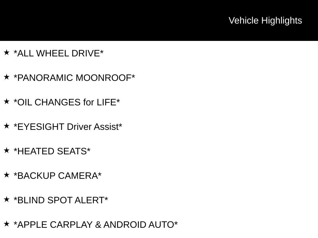 - Adaptive Cruise Control: EyeSight Adaptive Cruise Control
