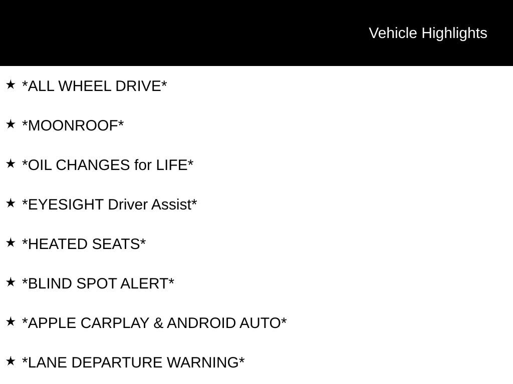 My Lakeshore Subaru is proud to service customer's saving you time & money on any Pre-owned vehicle! See dealer for complete details, dealer is not responsible for pricing errors, all prices, plus tax, title, plate, and doc fees. Serving Nunica and all of our surrounding cities like Norton Shores, Grandville, Greenville, Grand Rapids, Lansing, Kalamazoo, Walker, Comstock Park, Grand Haven, Holland, Wyoming, North Muskegon, Fruitport, Hudsonville, Spring Lake, Wolf Lake, Rockford, Zeeland, Kent City, Sparta, Coopersville, Allendale, Whitehall, and anywhere in the great state of Michigan. Buy from My Lakeshore Subaru in Nunica, MI and you will receive a best-in-class experience. Some of our used vehicles may be subject to unrepaired safety recalls. Check for a vehicle's unrepaired recalls by VIN at http://vinrcl.safercar.gov/vin/.